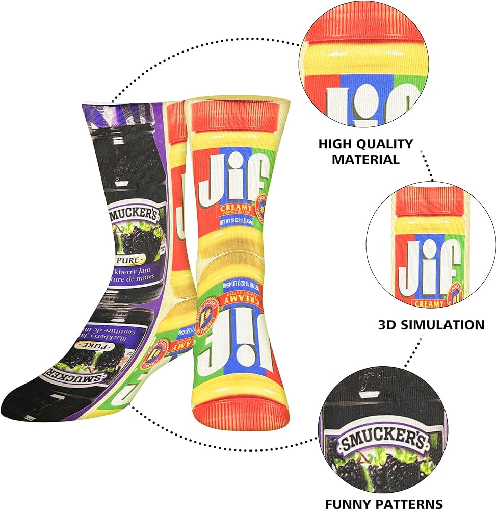 Funny and Versatile Accessories, The Perfect Gift:These funky food socks are so funny and suitable for everyday wear. They can be easily matched with your casual jeans, summer shorts,party and business clothes. At the same time, these fun socks are also a great gift, which can be given to your loved one on Valentine's Day, Christmas and other major festivals.