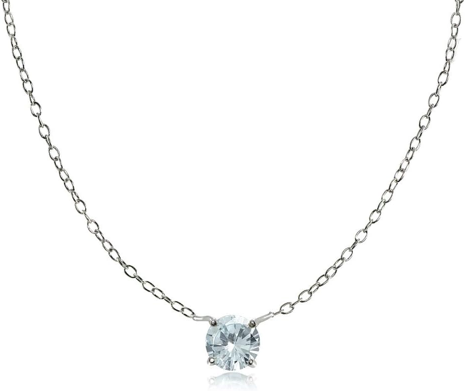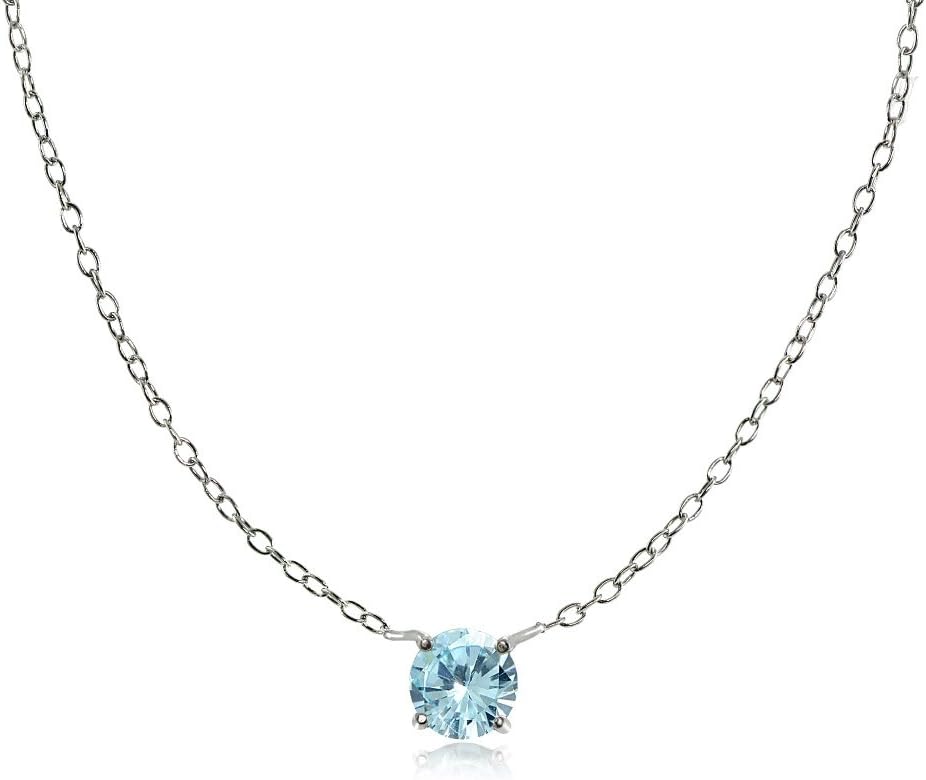Sterling Silver Small Dainty Round Genuine, Created or Simulated Birthstone Gemstone Choker Necklace