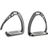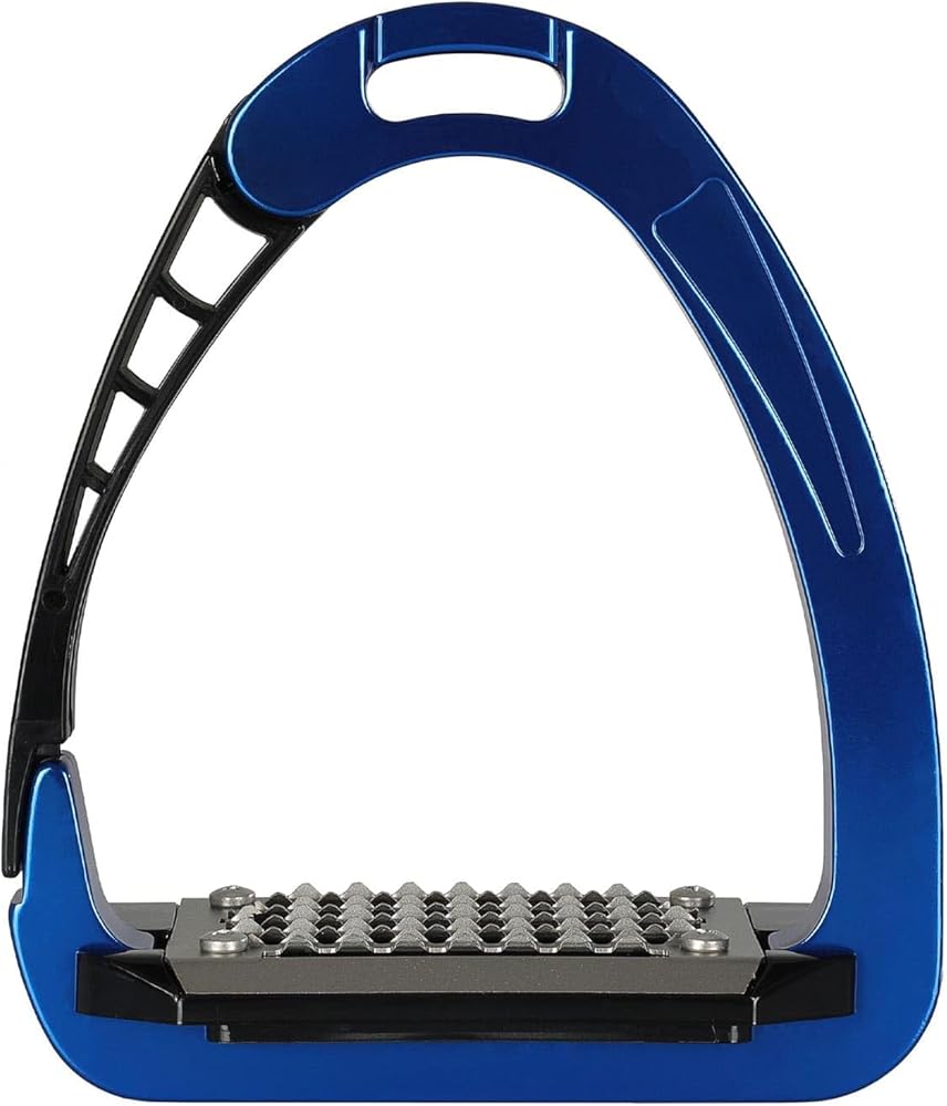The Acavallo Arena Alupro Safety Stirrup is designed with a lateral opening, allowing the rider an easier escape in a fall. The stirrups are made from a combination of CNC machined aluminum and Polymers. The unique design allows a subtle flex, leading to a more comfortable ride. The footbed is extremely secure, and allows dirt from the boot sole to fall through. Made in Italy