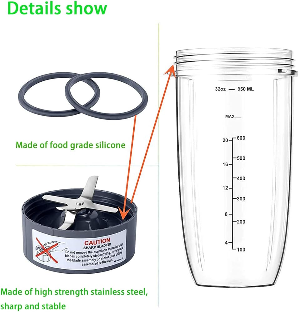 powerful function:Great for Smoothies and Frozen Drinks: the nutribullet blender parts is Perfect for Chopping, Grating and Blending. Dishwasher Safe and Easy Installation and Cleaning
