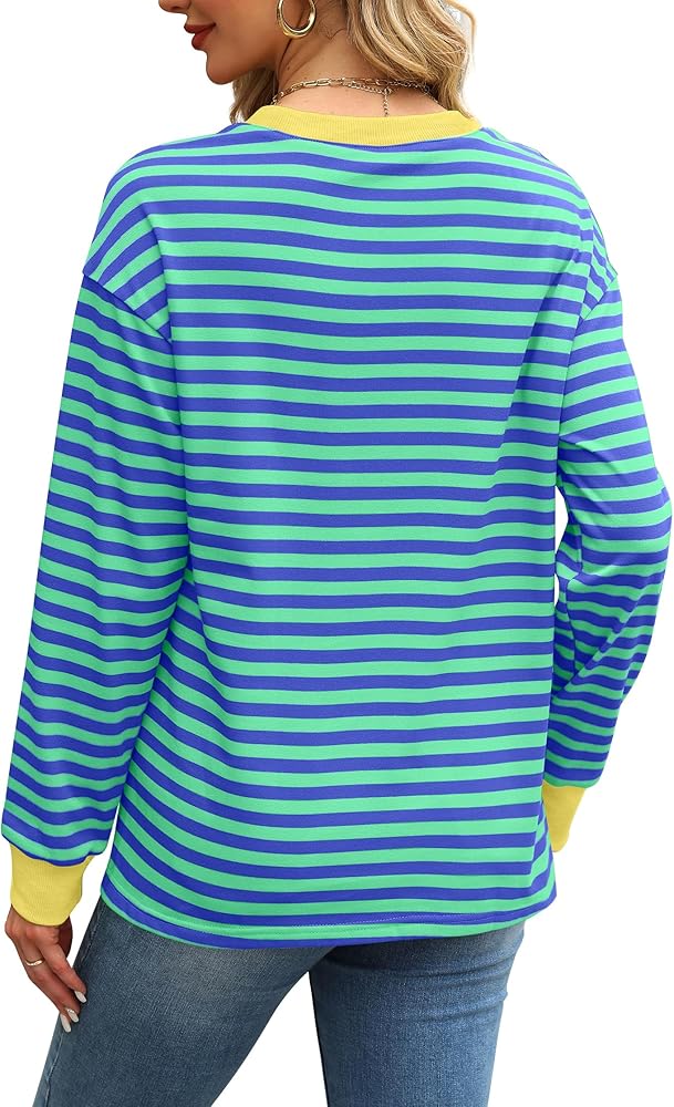 Features: Color block striped tunic for women girls, crew neck long sleeve drop shoulder tunic tops, ribbed neck, cuffs, loose fit. The unique stripe and multiple color contrast design, giving it a fun youthful vibe, quite trendy for y2k teen girls.