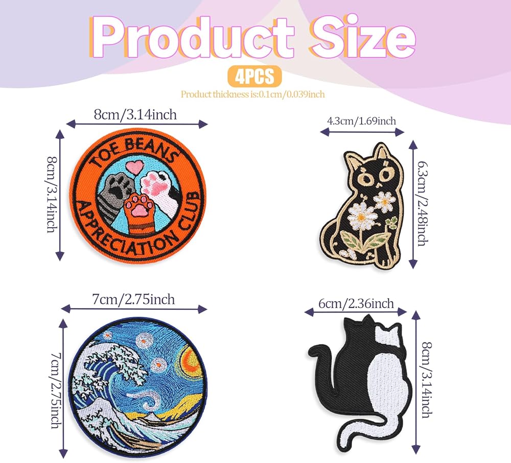 • 【Perfect Packaging】Animal embroidery patches consist of 4pcs scenery cat hot melt adhesive embroidery patches, sufficient quantity and various styles, cute iron on patches enough for your daily replacement or use, you can also share anime iron on patches with your family or friends.