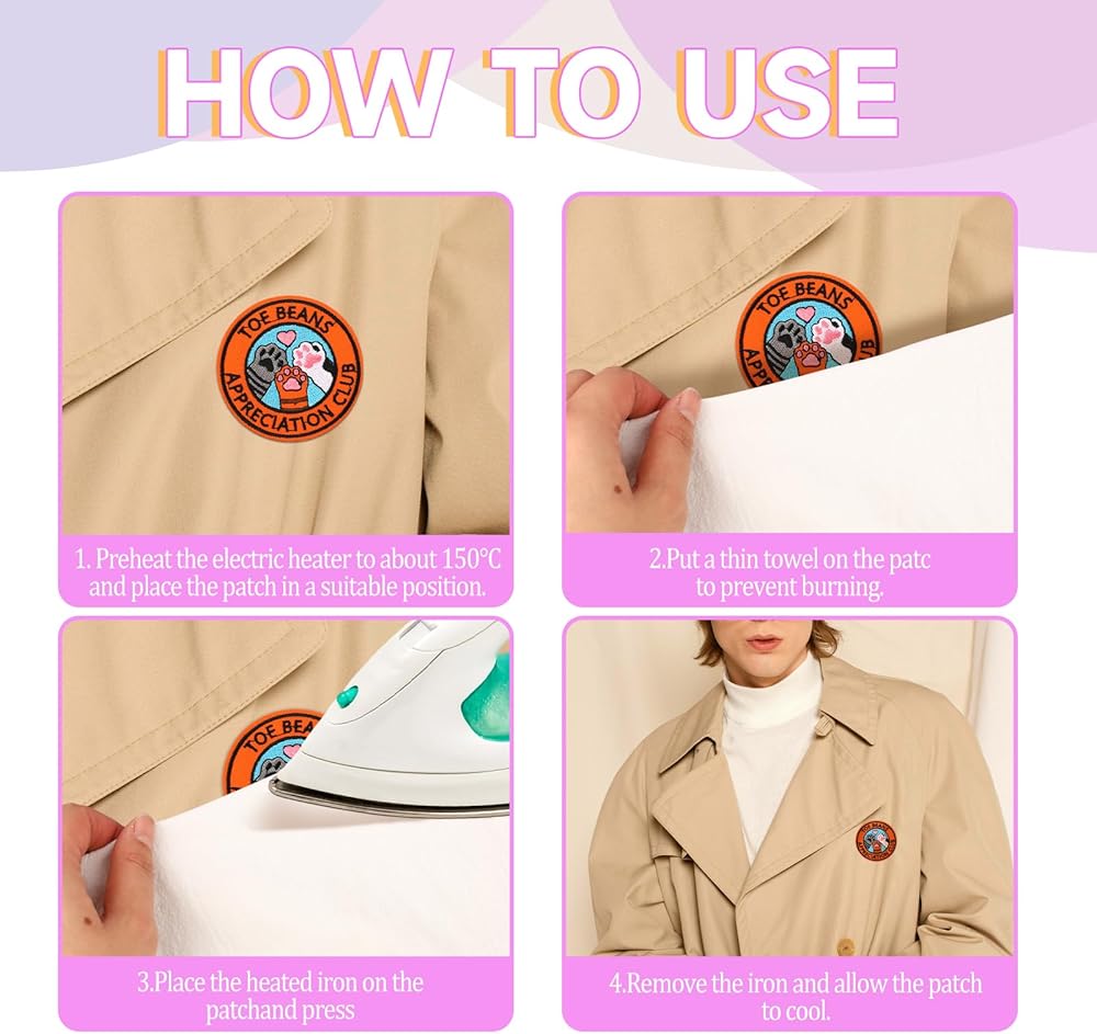 Preheat the electric heater to about 150°C, place the cloth patch in a suitable position, and cover it
