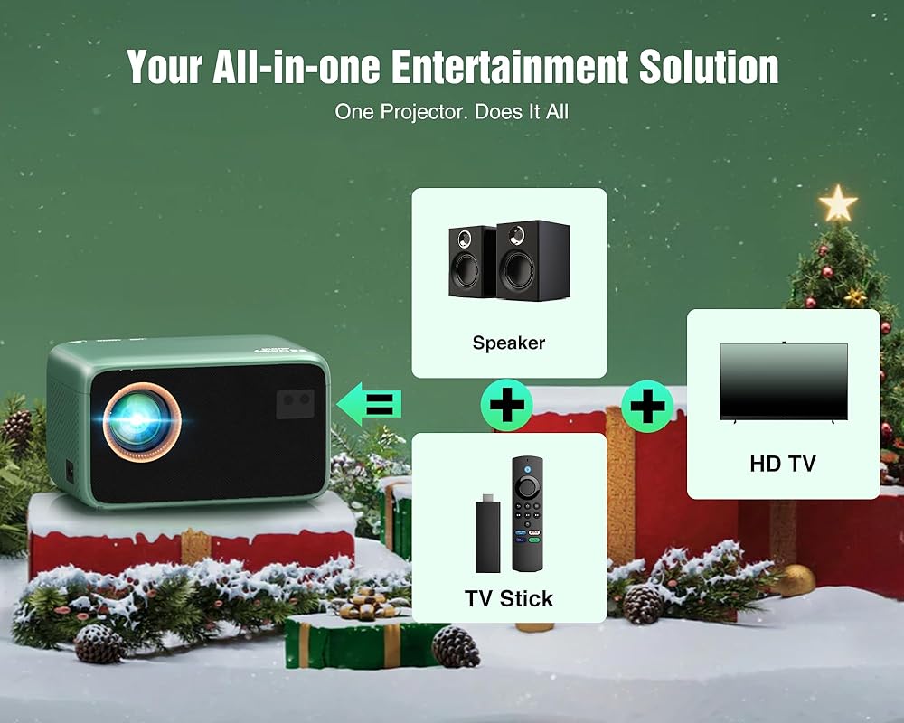 TMY 4K Projector with WiFi Bluetooth, Compatible with Netflix/Prime Video/YouTube, Outdoor Portable Home Theater Movie Projector, Smart Mini Projector for Indoor Outdoor Movies, Gaming and Camping