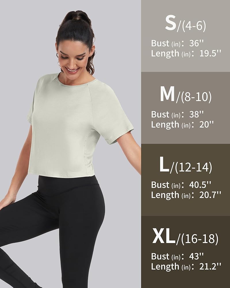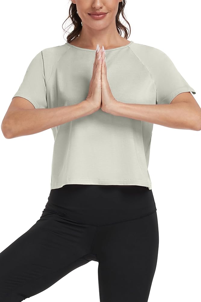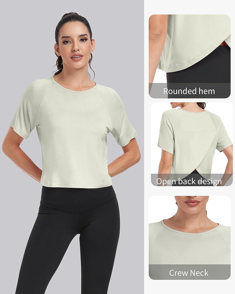 Unique Design: Solid color, round neck, short sleeve, loose fitting, cropped length, open in the back and allows for ventilation.