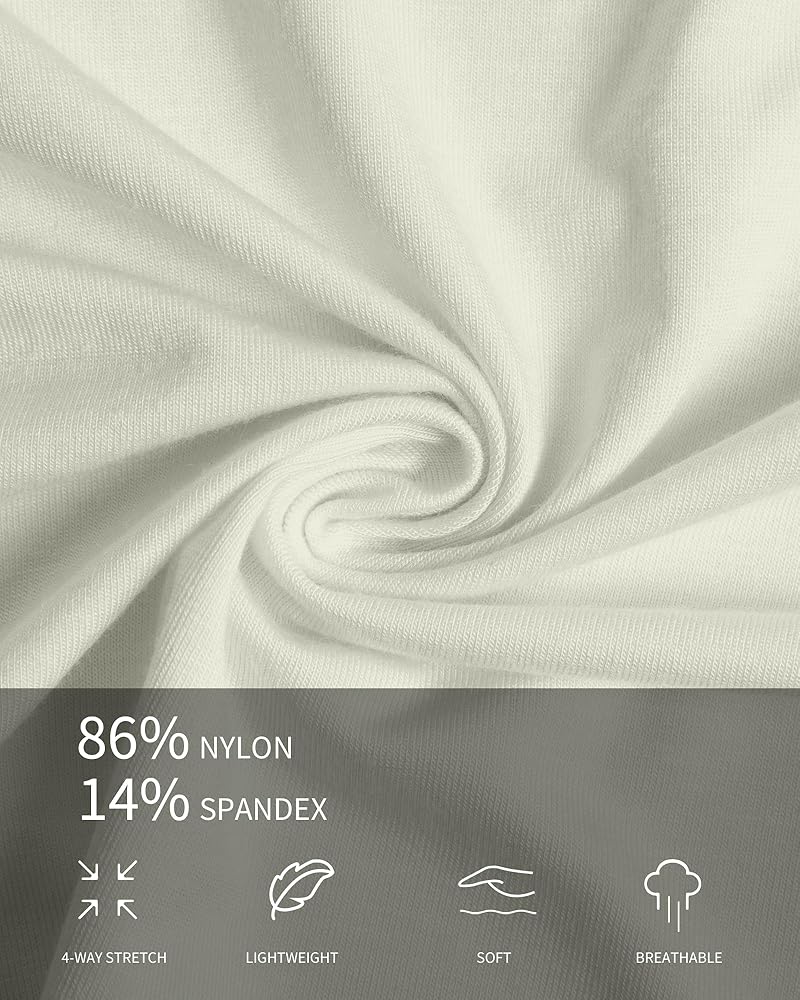 Fabric: 86% nylon,14% spandex. Soft, breathable and lightweight material to keep u comfortable all the day.
