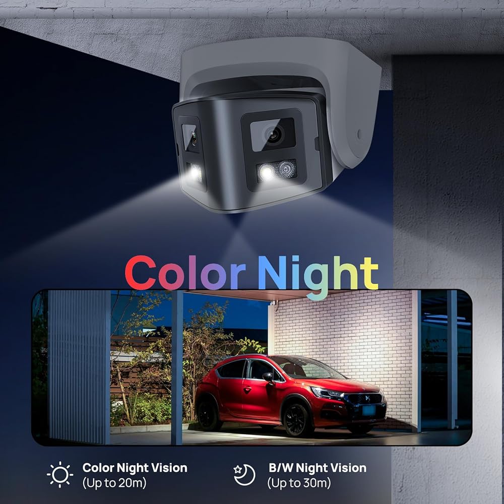 【16MP UHD & COLOR NIGHT VISION】:this dual-lens poe camera has great imaging .Resolution 3840×[email protected] advanced 4mp ip camera with 4K image sensors,can enhance color imaging in low-light conditions or at night.And the efficient H.265+ compression technology ensures smooth picture preview and playback.