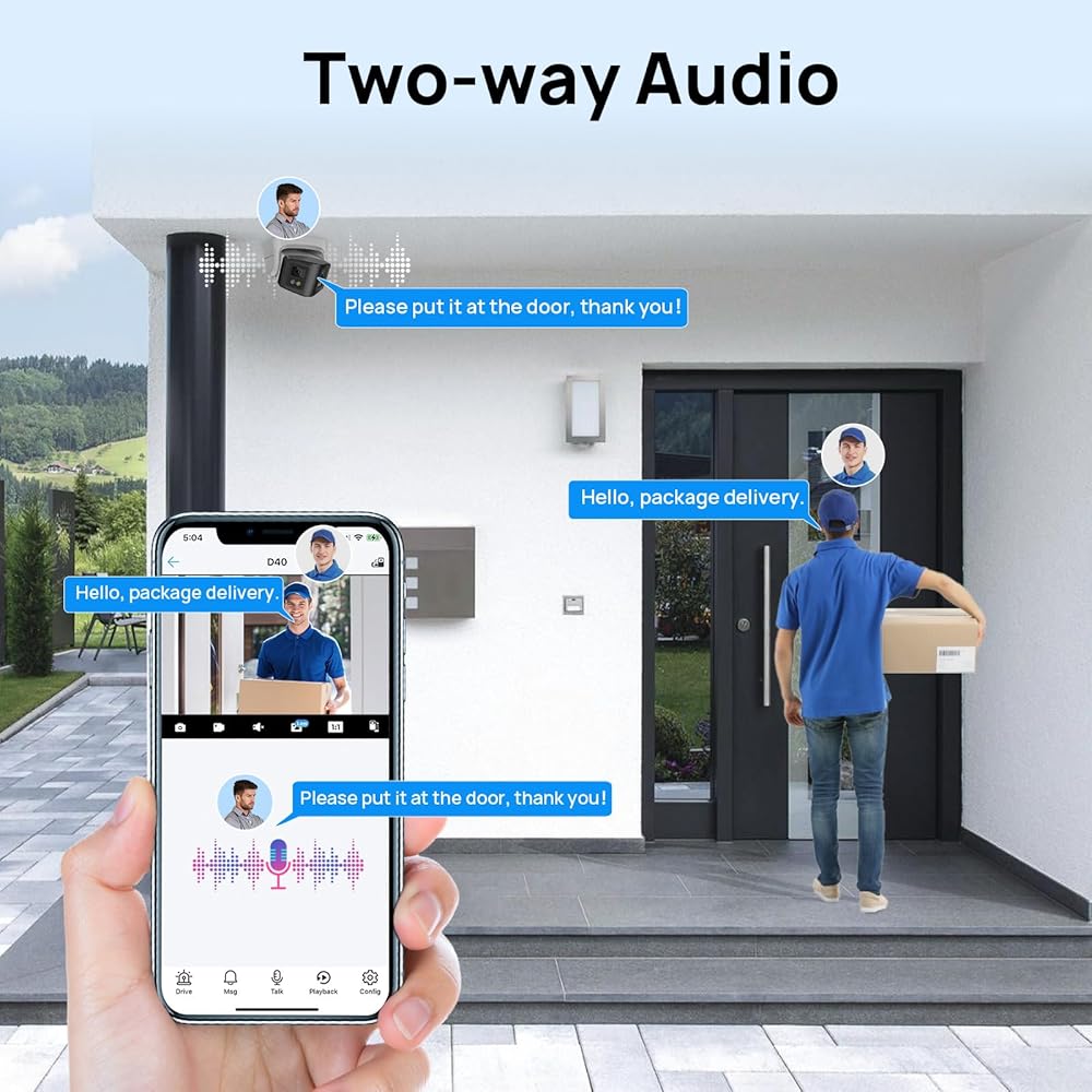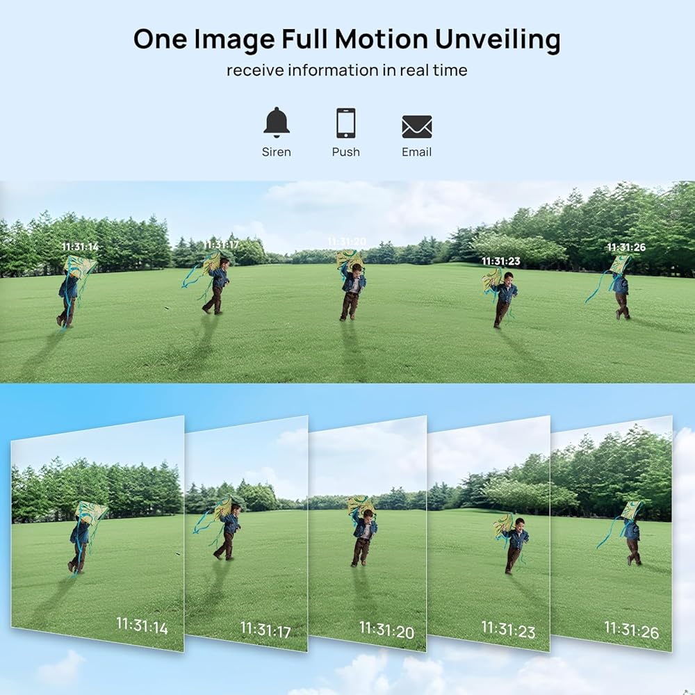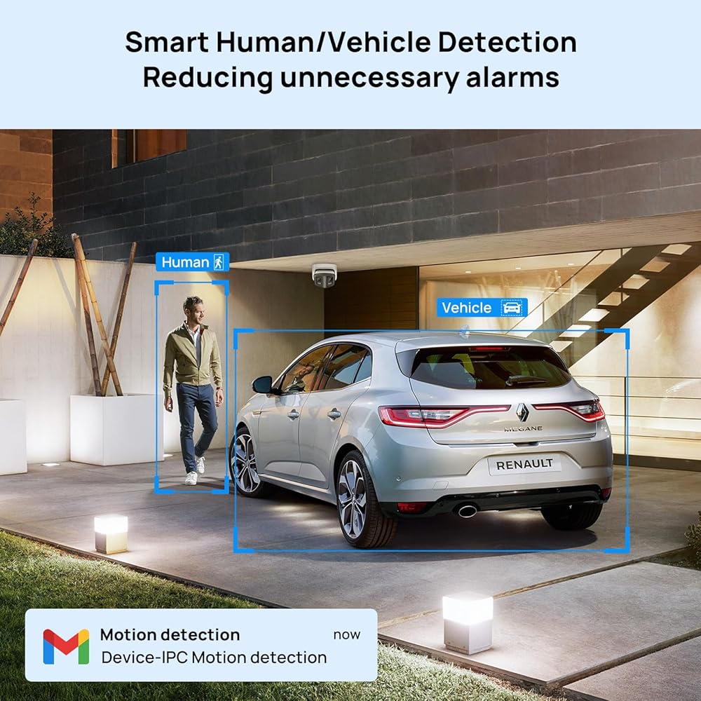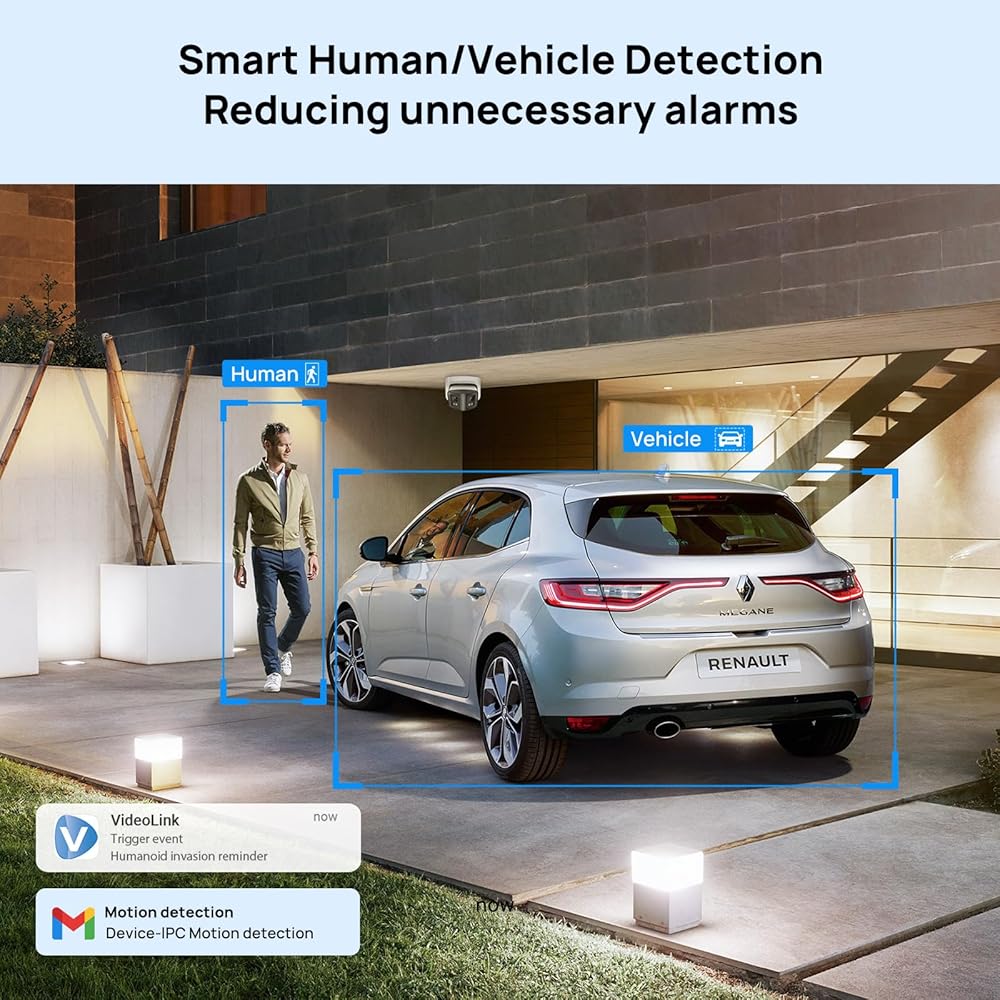【SMART DETECTION & AUTO TRACKING】Advanced person/vehicle detection movements from other objects, reducing false alarms. It also tracks the moving targets automatically and keeps an eye on suspicious activities for you.