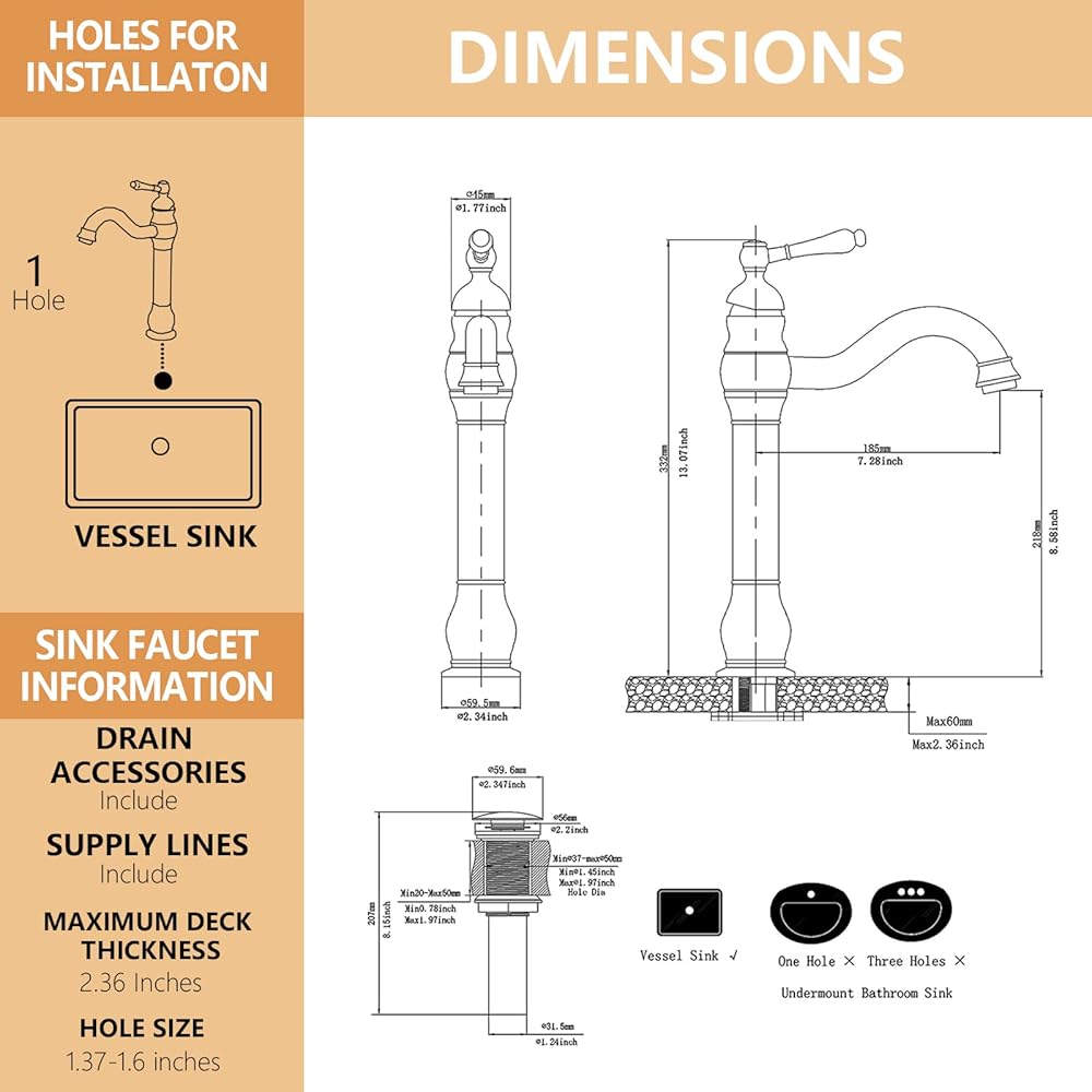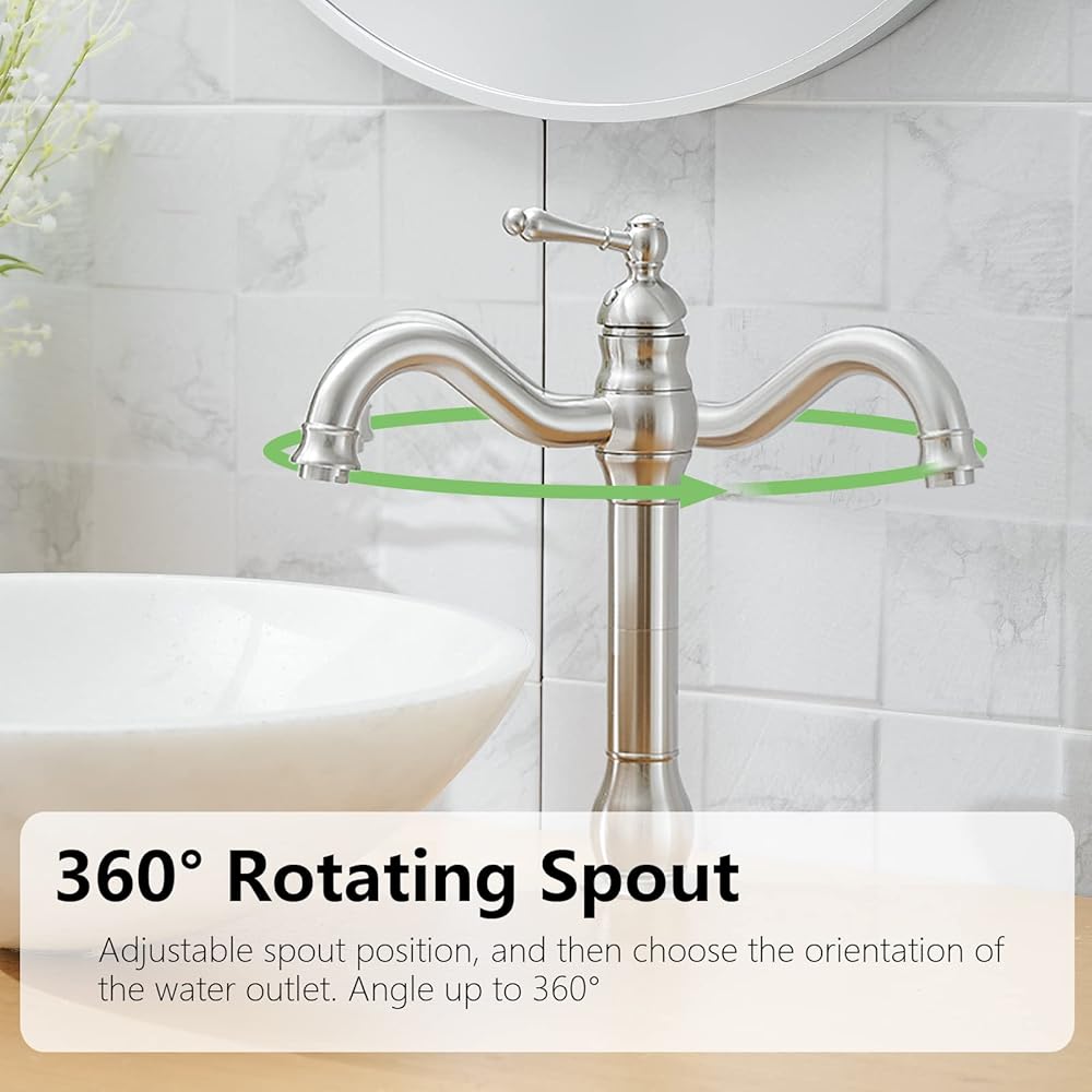 【Vessel Sink Faucet】This tall bathroom faucet fit vessel sink,The heightening body is combined with the water outlet of the waterfall, which is more natural and beautiful.