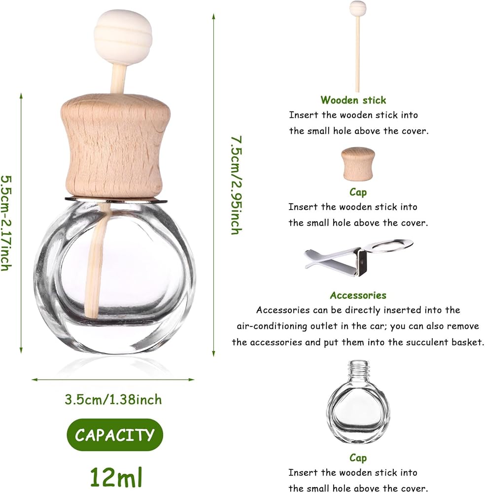 The diffuser bottles are made of glass, the cap is wooded, and they can add air freshener multiple times, not easy to break, easy to accompany you for a long time.