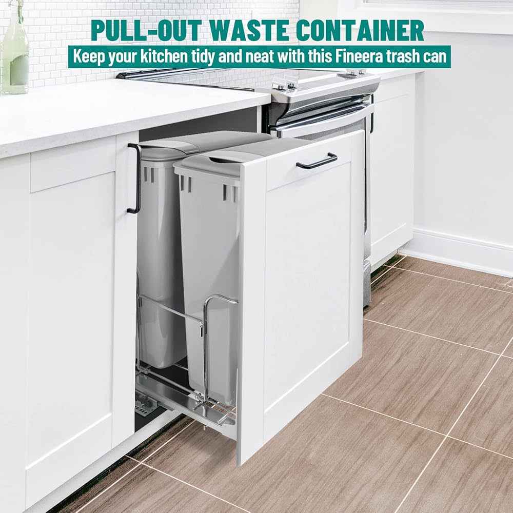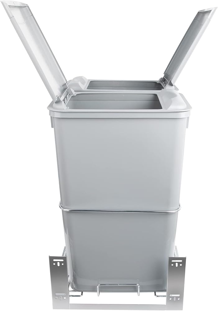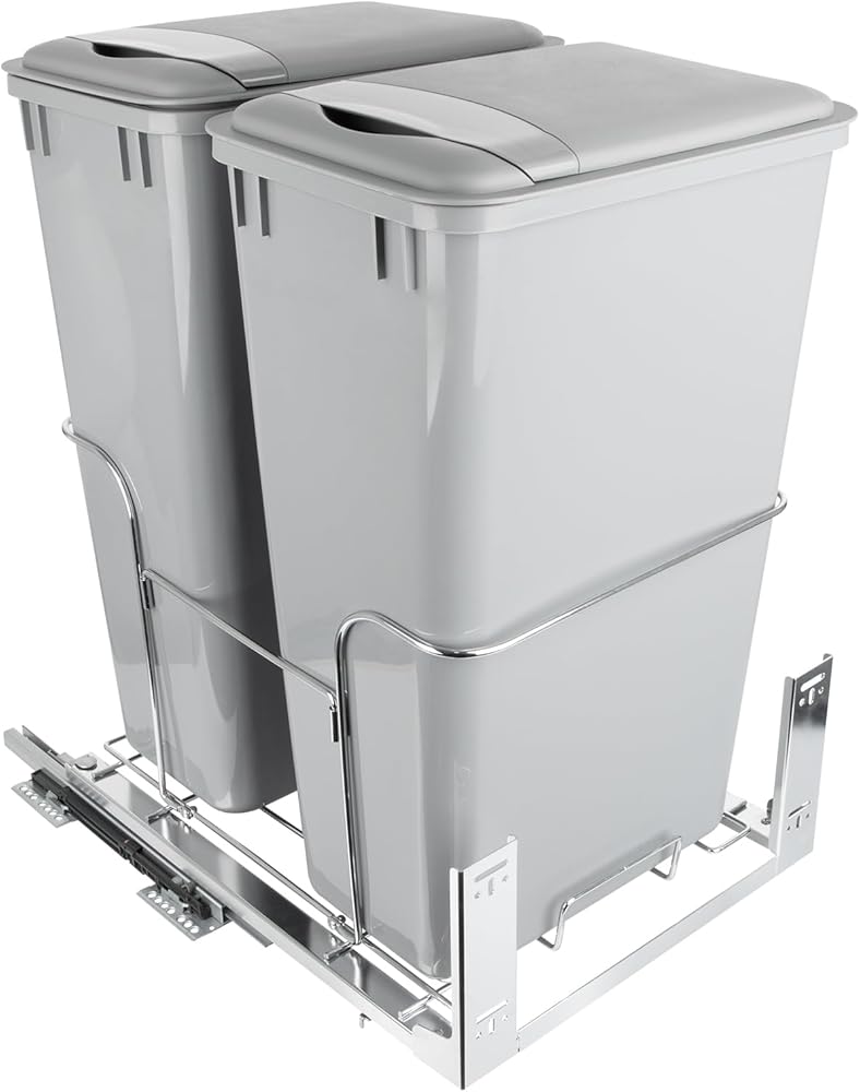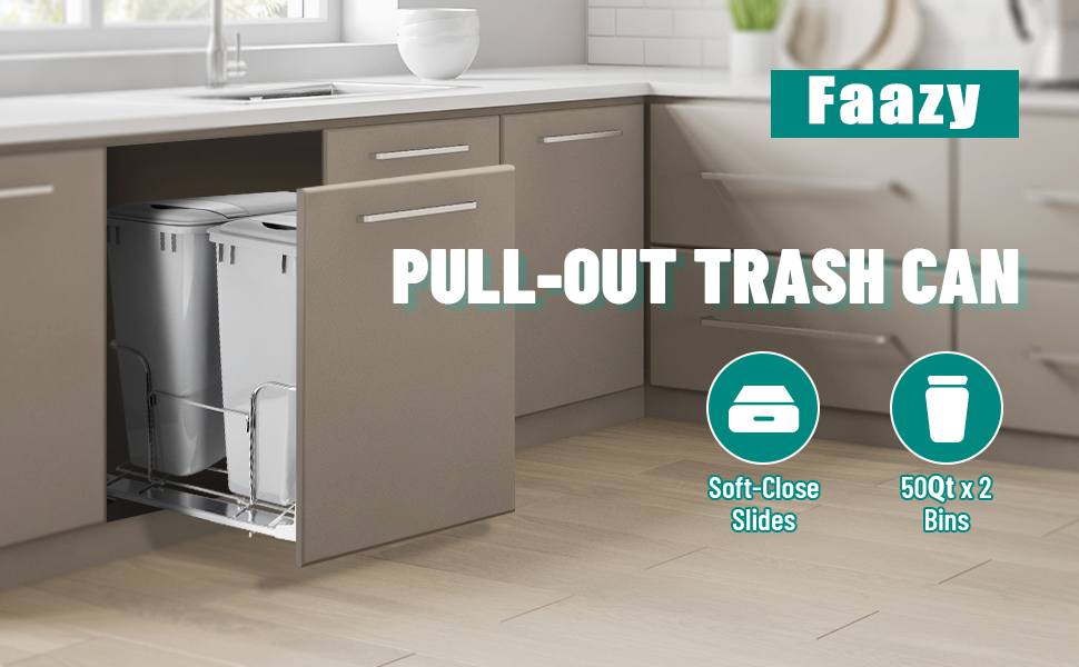 DOUBLE THE SPACE: This pull-out trash can features a 50Qt capacity with double bins design providing extra storage for waste and recyclables.