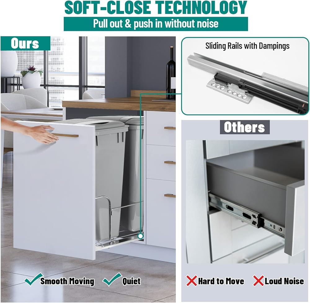 SMOOTH OPERATION: Soft-close slides allow for quiet and gentle opening and closing of the trash can.