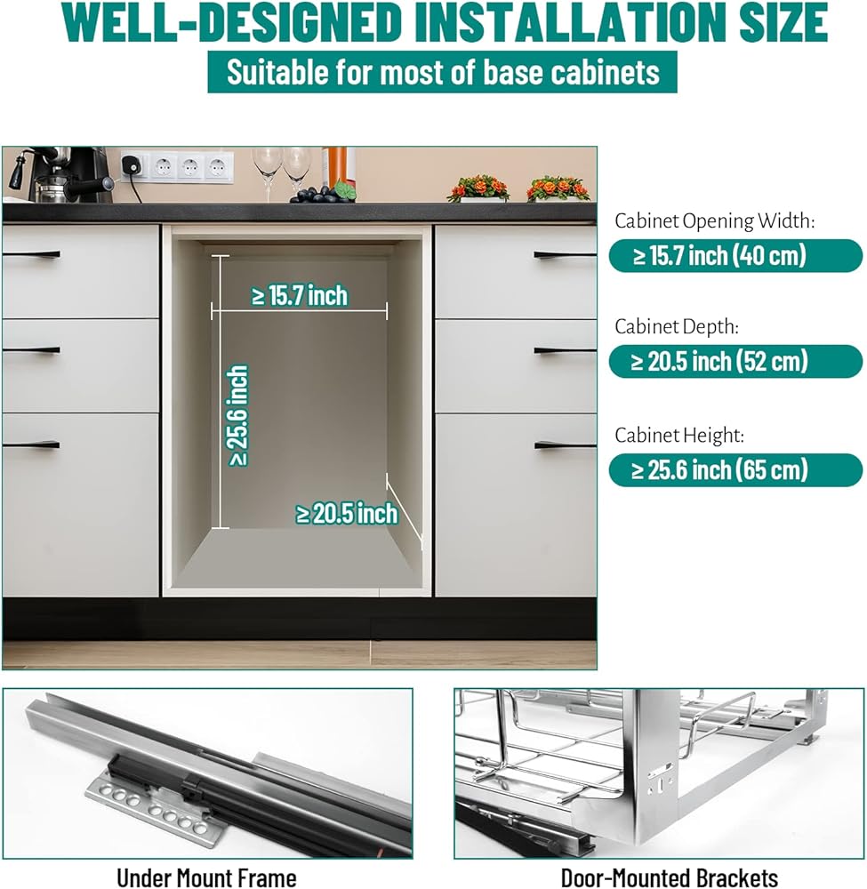 STRONG AND DURABLE: With a 176 lbs load capacity, this pull-out can withstand the waste without buckling or bending.