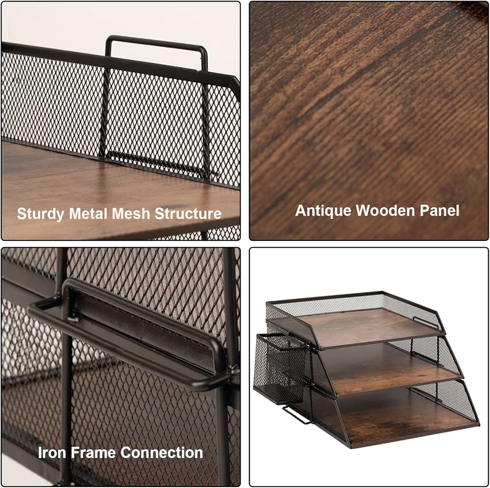 ☘️【UNIQUE DESIGN & MATERIALS】:Combination of black metal mesh and retro wood planks, both contemporary and rustic desk accessories decors, make your desk beautiful.