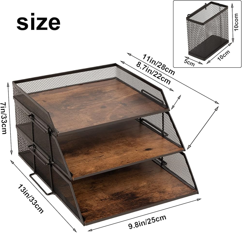 ☘️【2 TIER WOOD TRAY】: This set of 2 wood paper trays for the office means you have plenty of room to store all your important files while also saving desk space with a mail sorter and letter tray organizer two-tier tray.