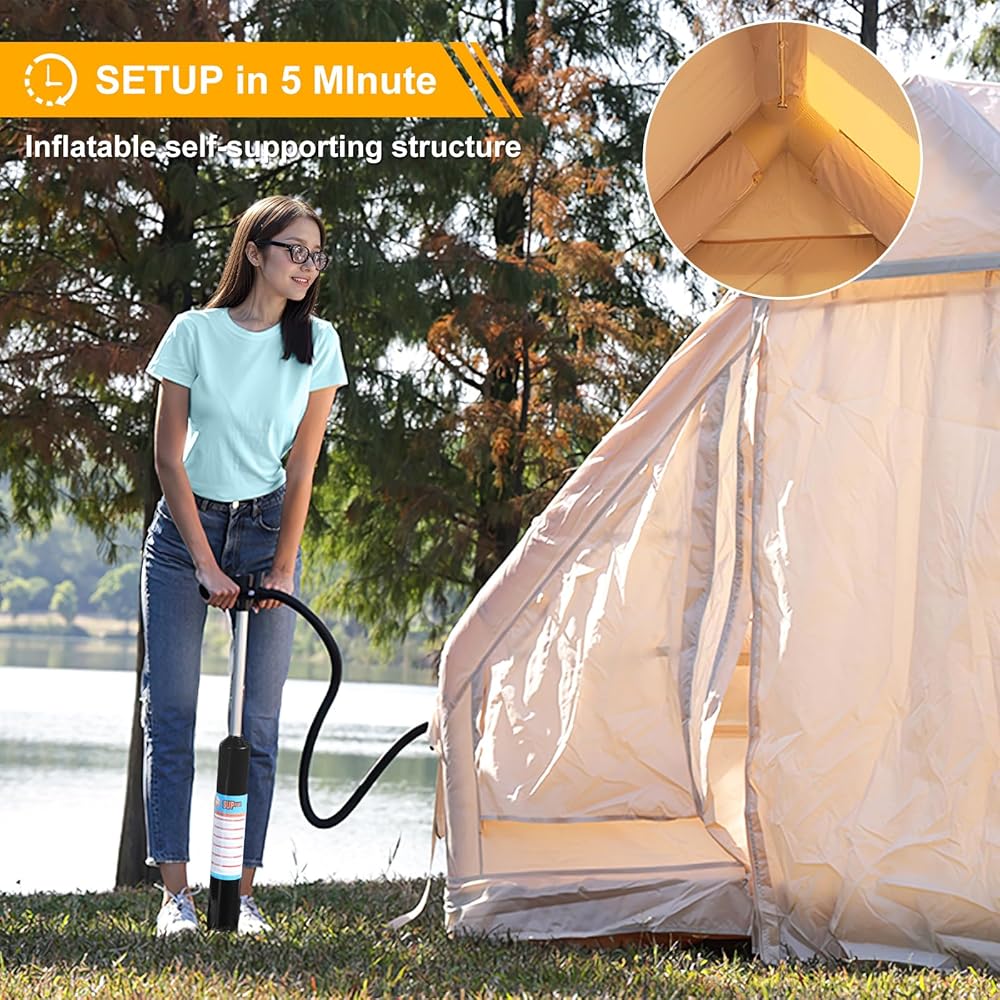 خيمة تخييم قابلة للنفخ مع مضخة، خيمة عائلية كبيرة، سهلة الإعداد 4 فصول مقاومة للماء في الهواء الطلق، خيمة تخييم مع نوافذ شبكية وفتحة مدخنة، خيام 4 أشخاص للتخييم، في الهواء الطلق