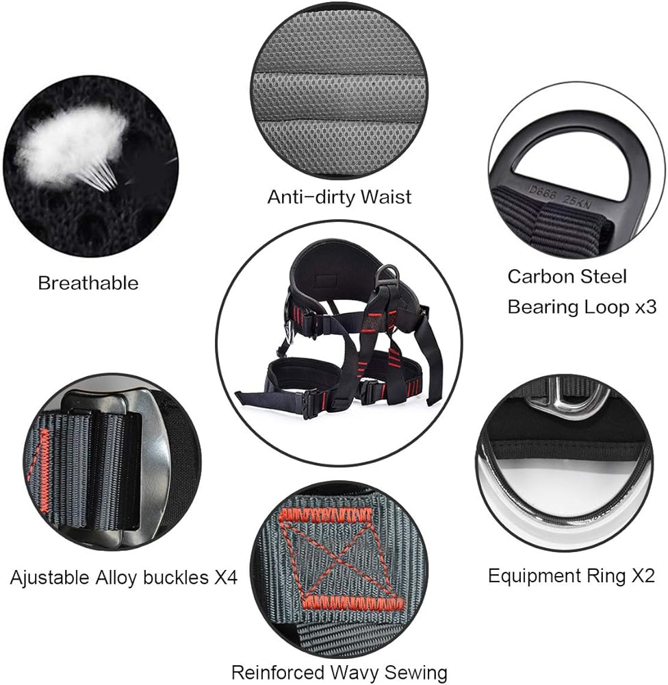 ※Wide Range of Uses—This safety gear is perfect for mountaineering and rock climbing, zipline, Outward Bound, fire rescue, working from heights, construction, demolition, tree climbing, roofing, camping, firefighting, and a wide range of outdoor activities.