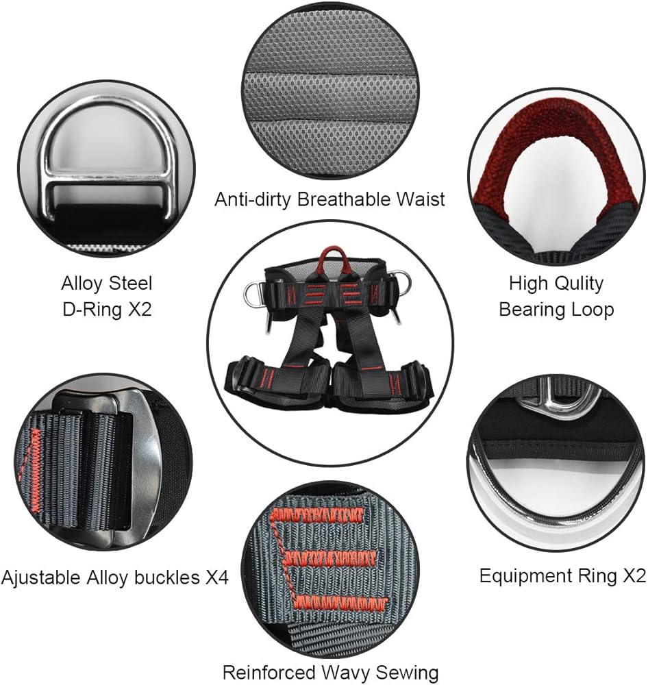 ※Wide Range of Uses—This safety gear is perfect for mountaineering and rock climbing, Outward Bound, zipline, fire rescue, working from heights, construction, demolition, tree climbing, roofing, camping, firefighting, and a wide range of outdoor activities.