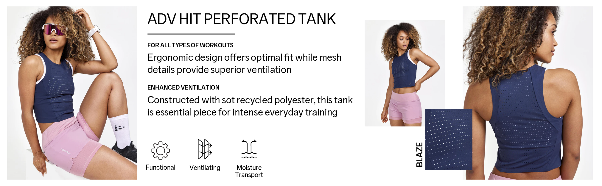 DESIGNED FOR HIGH INTENSITY WORKOUTS: The ADV HIT Perforated Tank is a cropped tank top that has been designed for high-intensity workouts indoor and in warm conditions. It's made of recycled polyester and elastane, offers excellent moisture transport, and freedom of movement.