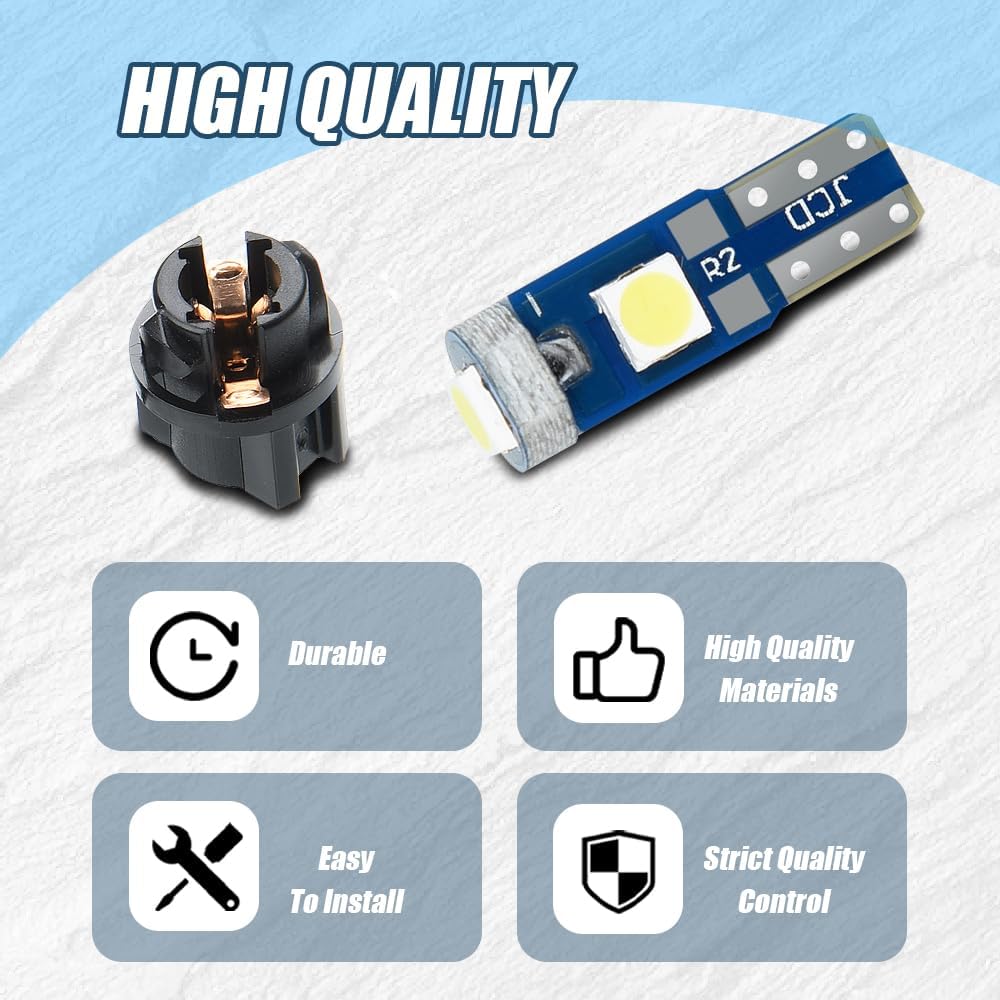 [Safety performance]: Dash instrument lights bulb built-in high-precision carbon fiber circuit board, waterproof, high temperature resistance, heat dissipation ability, with circuit protection, no need to worry about short circuit. LED light light is soft, high brightness and not dazzling, will not interfere with your normal driving, please rest assured to use.