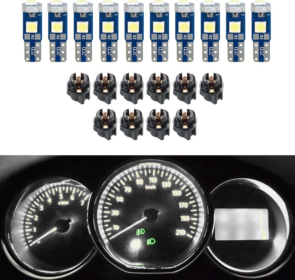 10PCS T5 LED Lights for Car Dashboard, Dash Light Bulbs, T5 37 74 LED Bulb with Twist Lock Socket, Instrument Cluster Bulbs Kits for Auto Car Gauge Cluster Dash Lamp Instrument Panel Indicator