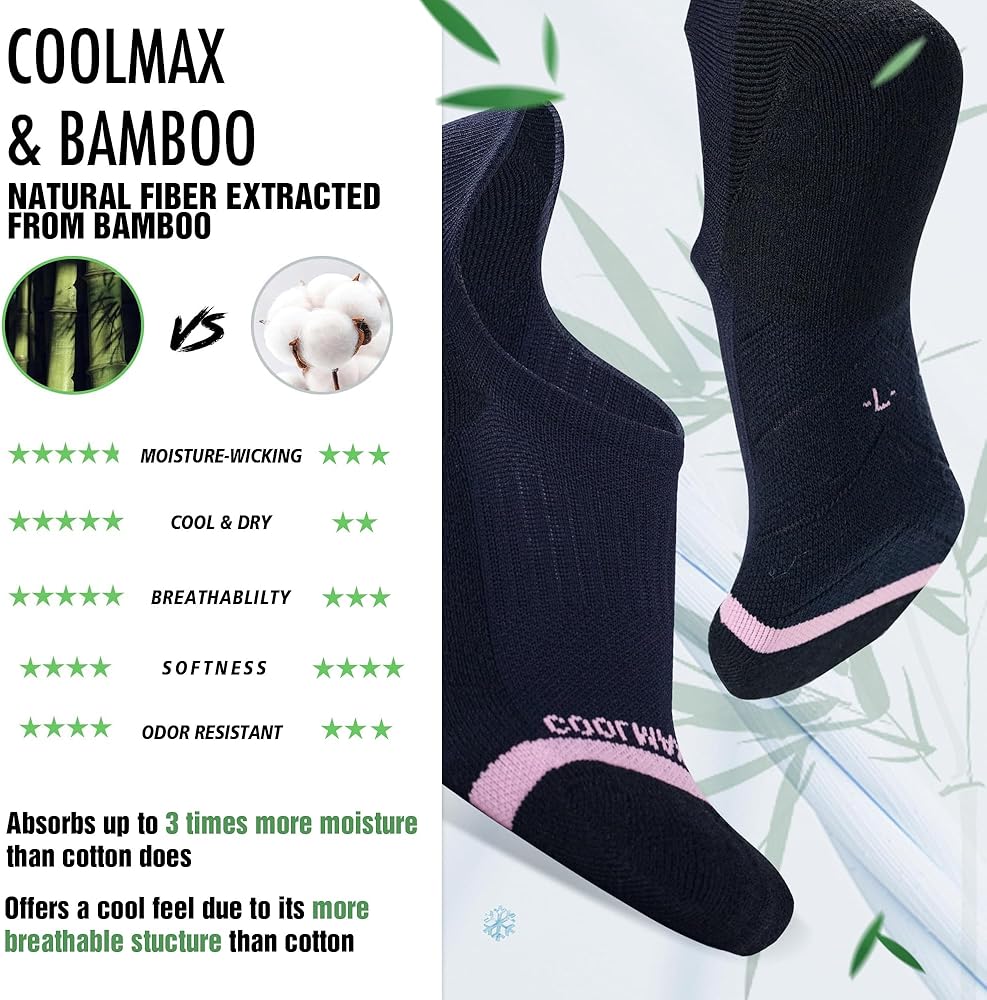 Premium Bamboo Viscose & CoolMax fiber - Brisira no show socks womens meticulously crafted using high-quality Coolmax and Bamboo Viscose materials, known for their exceptional softness, breathability, and durability. Brisira womens socks are ideal for daily work, running, cycling and other sports.