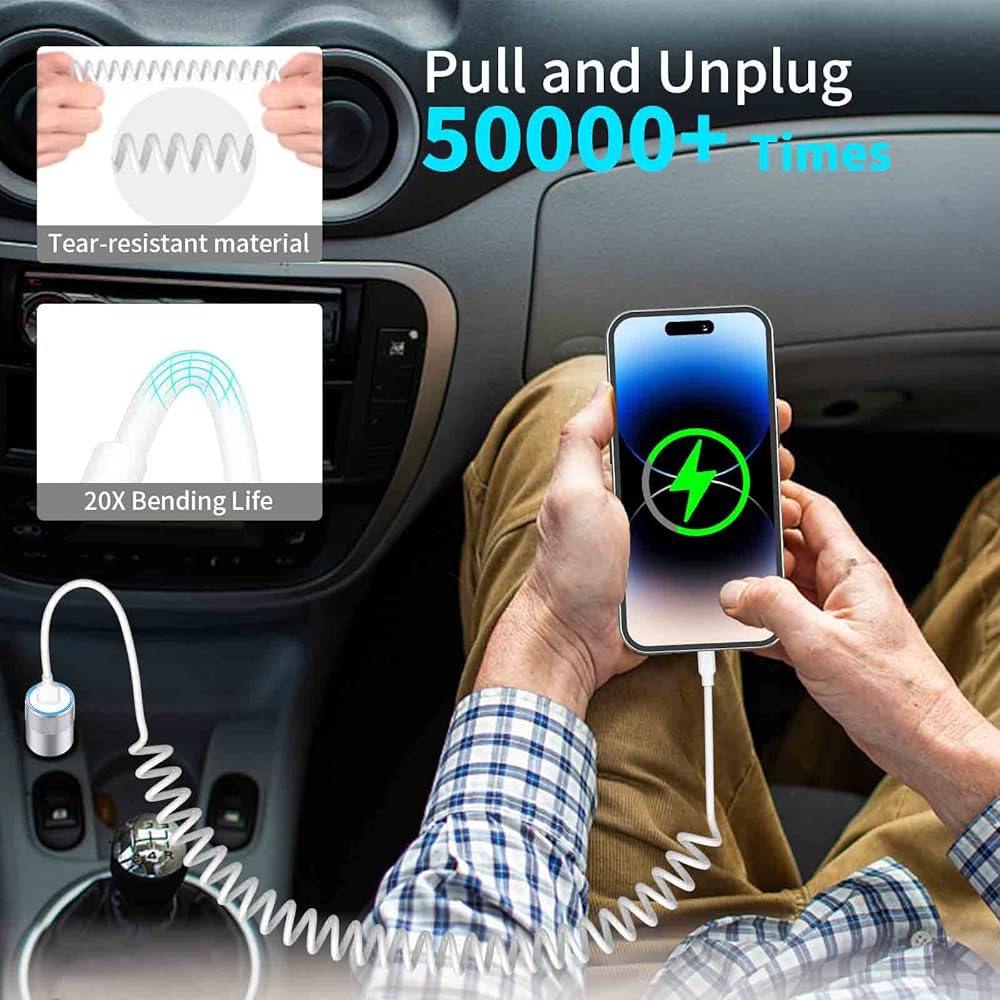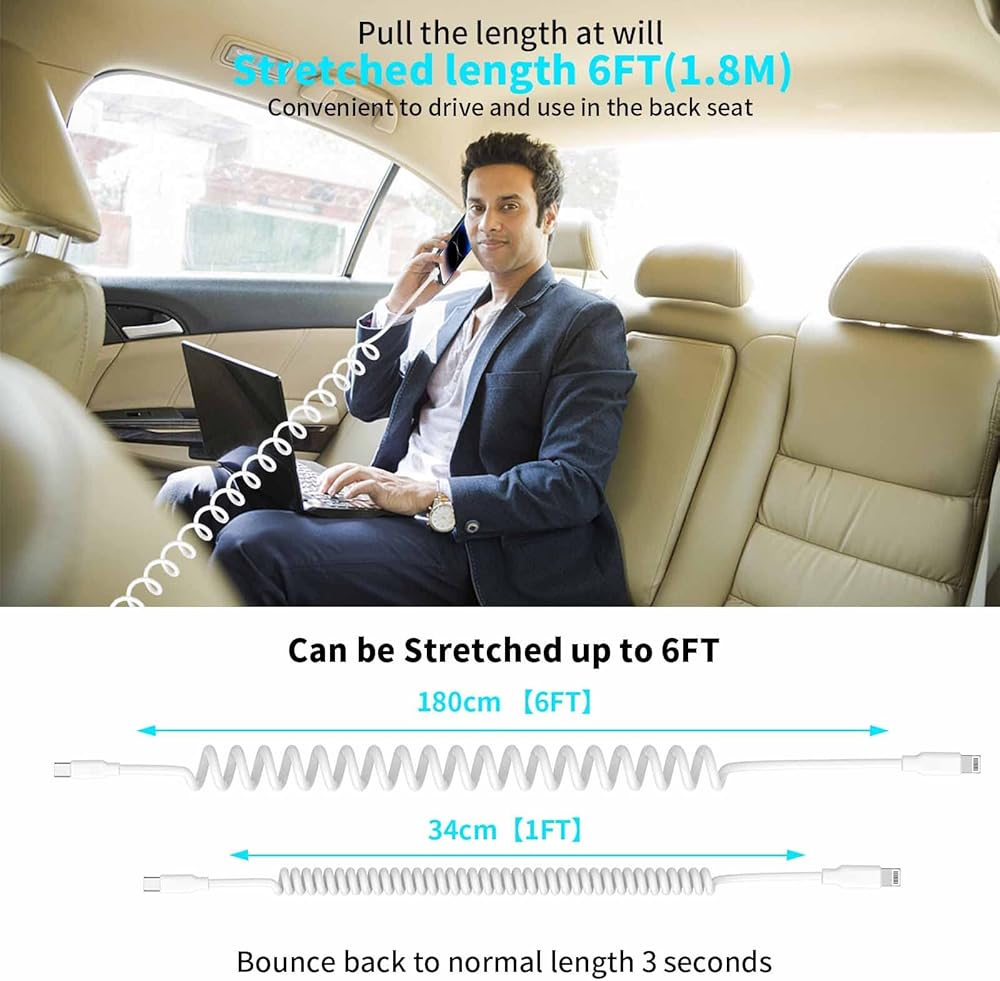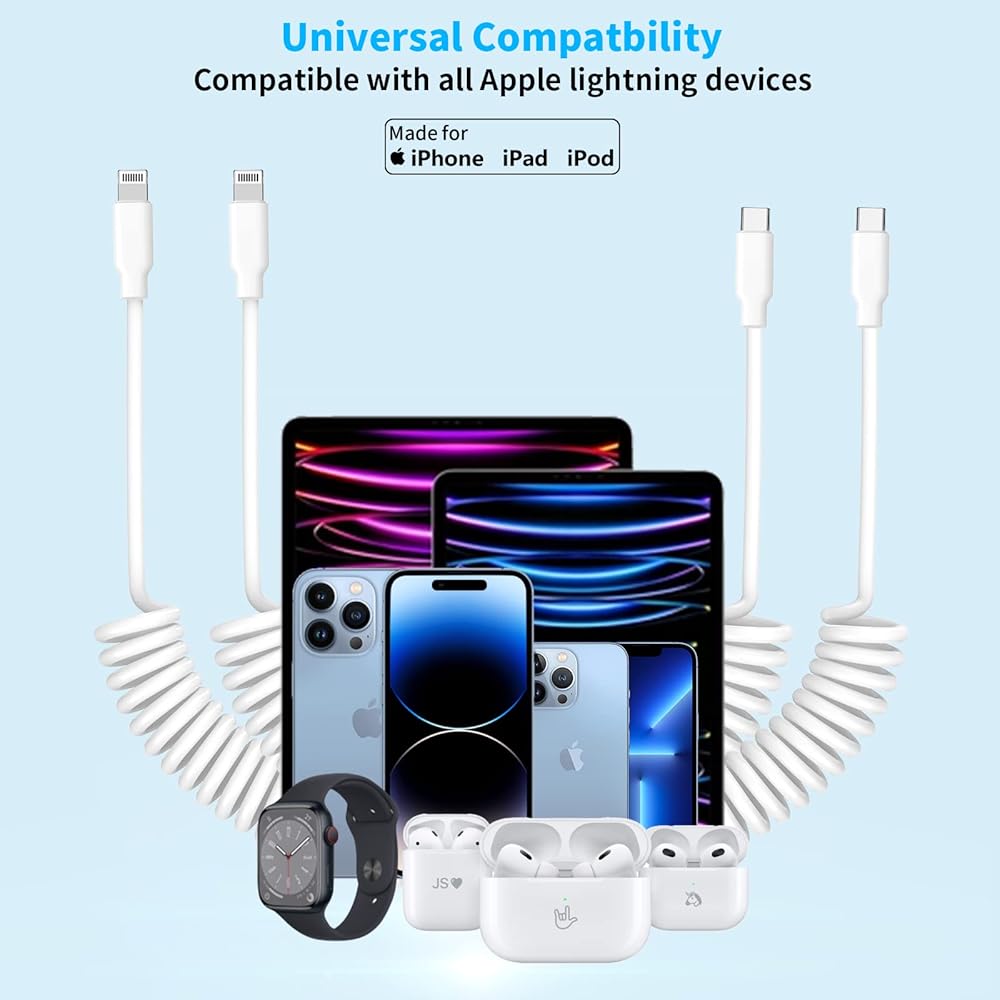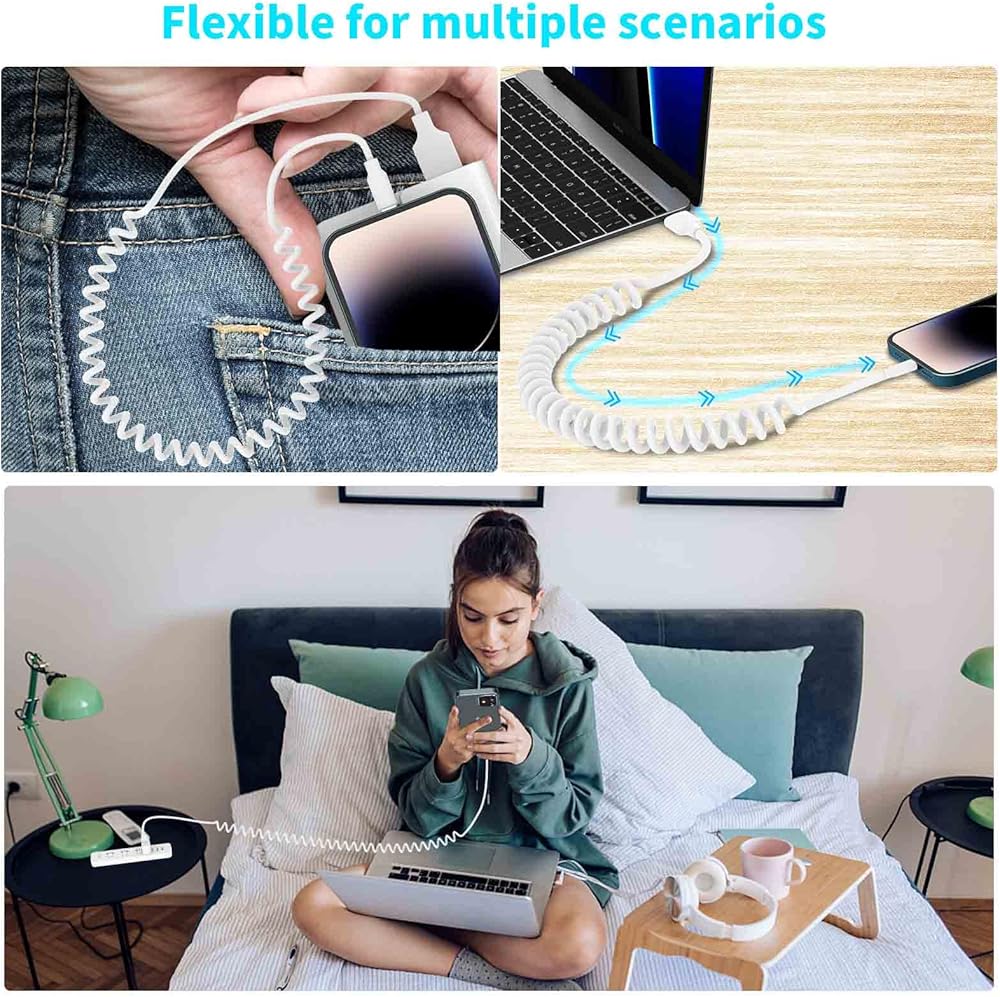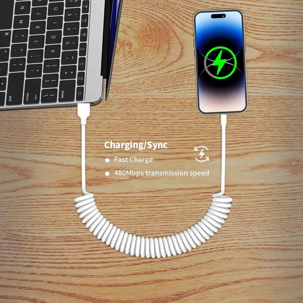 Coiled iPhone Cable, perfect solution to stay neat, organized, and keep cords out of the way