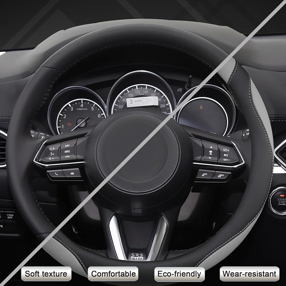 High Quality Material - This steering wheel cover is made of microfiber leather and natural PVC, breathable, durable and comfortable to touch.