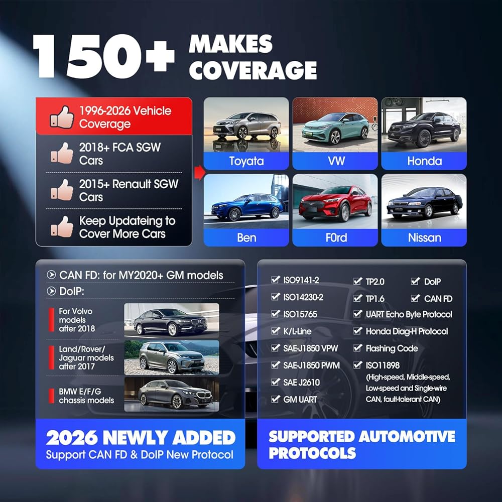 👍🏆【Advanced Functions Added to MX900, Superior to MK808S MS906】As most cost-effective scanner, Autel Newest MaxiCheck MX900 was empowered with advanced features, which previously ONLY available on $1500+ Autel scanner like MS906 Pro ($1569), MS908S PRO II ($2169): 👍DoIP & CAN FD bus Protocol that improves 5X faster data TX but also talks with newer models. Up to now, this Autel scan tool serves 99% of main vehicles and works well on 2022/2023 new models, even 2024.👍Detailed Pre-&Post-Scan to ENSURE/ PROVE complete & safe diagnostics to customer. 👍Same WiFi Printing as MS906 Pro. 👍Auto VIN&Scan VIN/License to idetify car info. in seconds thanks to Autel latest technology - Auto Scan 2.0