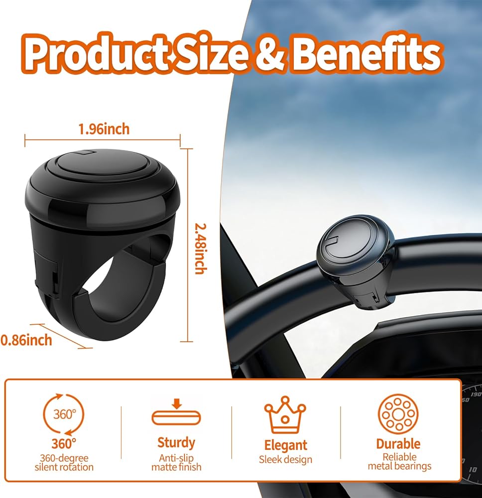 Smooth 360° Rotation: Experience seamless maneuverability with the 360° smooth rotation of our auto steering wheel spinner. Built with high-quality metal bearings, say goodbye to jerky motions and enjoy fluid, single-handed steering.