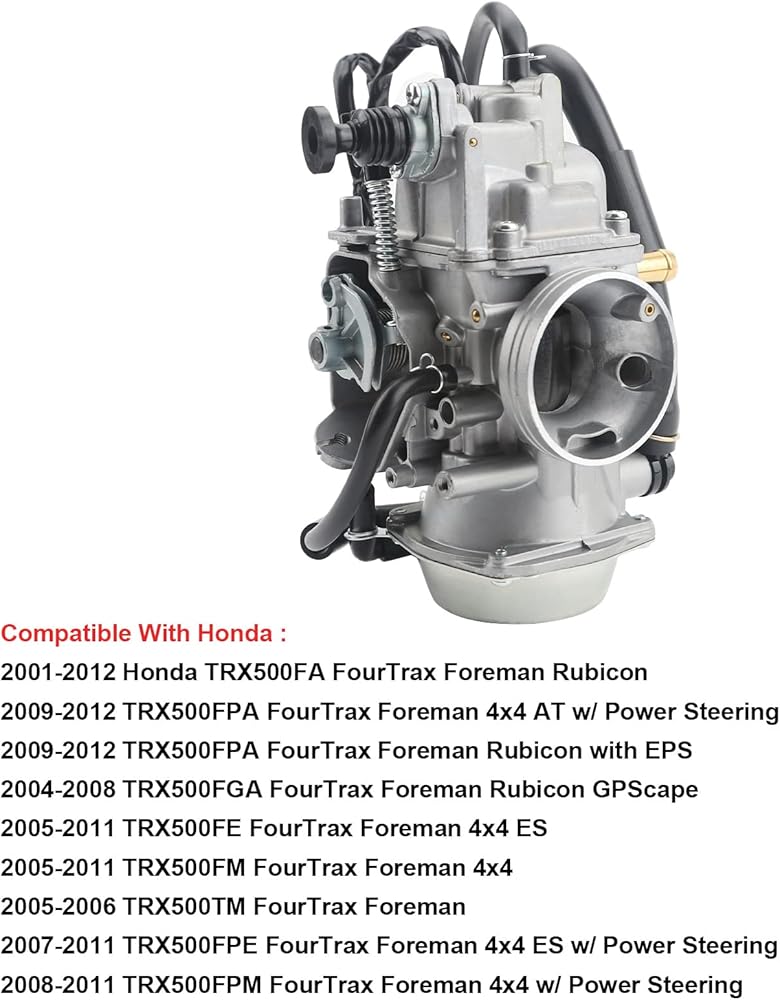 【FIT FOR】TRX500 Carburetor With Fuel Filter Compatible With 2004-2008 TRX500FGA FourTrax Foreman Rubicon GPScape, 2005-2011 TRX500FE FourTrax Foreman 4x4 ES, 2005-2011 TRX500FM FourTrax Foreman 4x4, 2005-2006 TRX500TM FourTrax Foreman, 2007-2011 TRX500FPE FourTrax Foreman 4x4 ES w/ Power Steering, 2008-2011 TRX500FPM FourTrax Foreman 4x4 w/ Power Steering