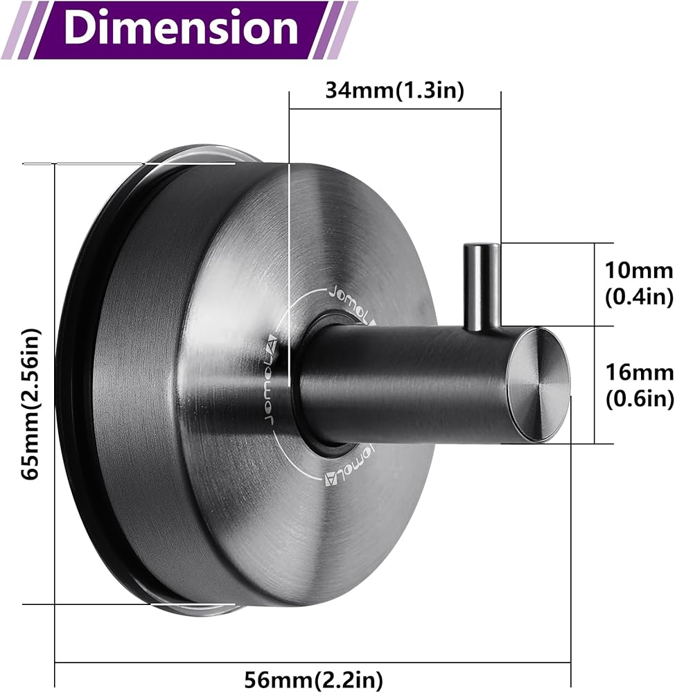 Innovative Suction Cup Holder Design: JOMOLA Strong Vacuum suction hooks holder allow you to install at any corner of the house. No tools, no drilling, no surface damage. Overload-maximum weight 5KG (11lbs).