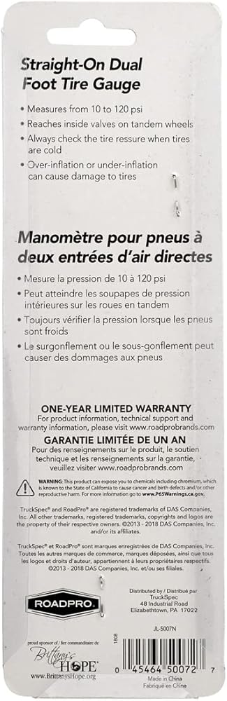 RoadPro TruckSpec JL-5007N 6.5" Straight-On Dual Foot Tire Gauge