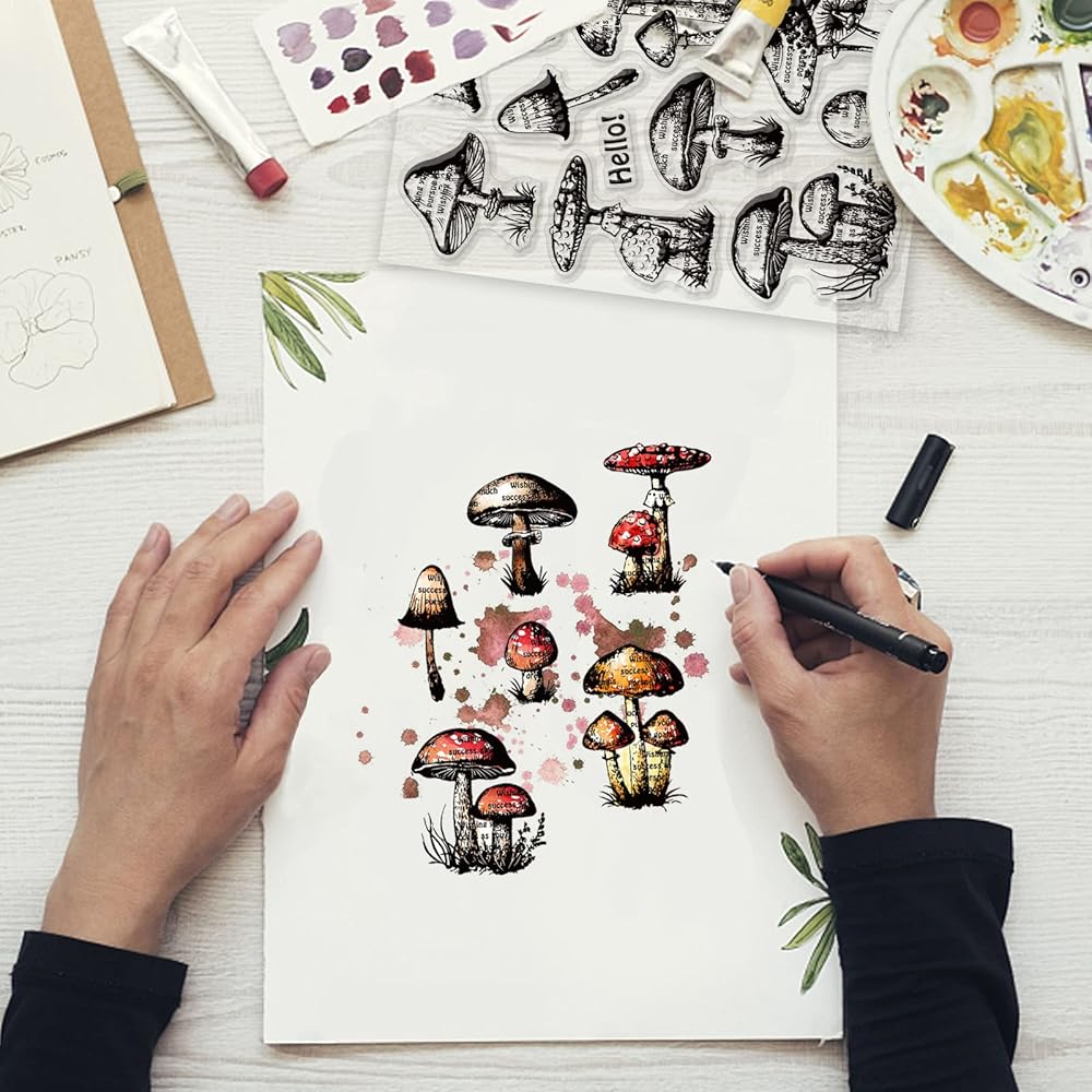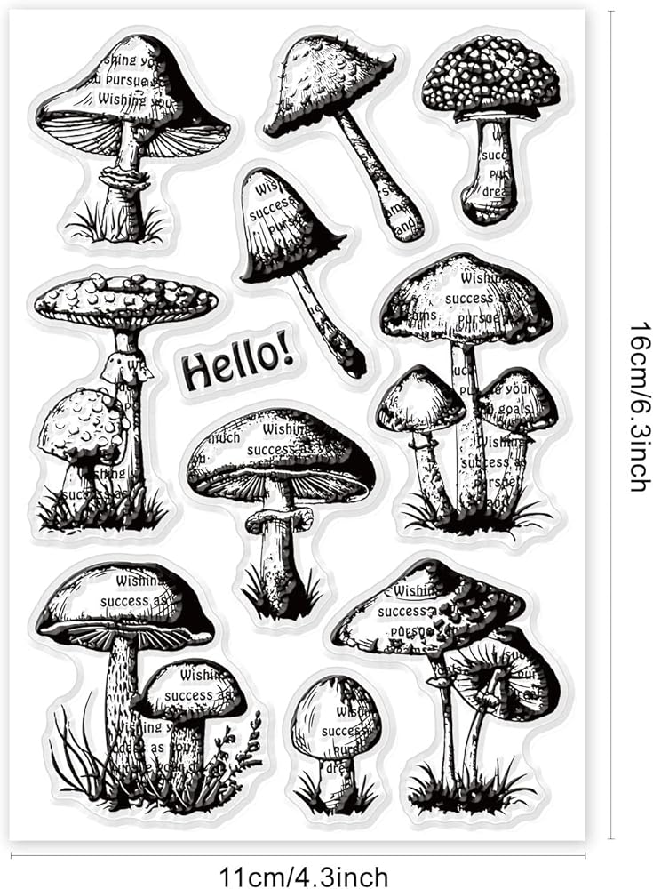 Ferns Mushrooms Clear Stamps: 1pc 160x110mm/6.3×4.33inch clear silicone stamp with patterns of ferns and mushrooms for decorating your envelope, postcard, scrapbook, diary and holiday cards.