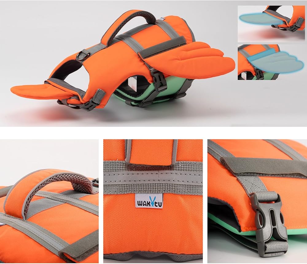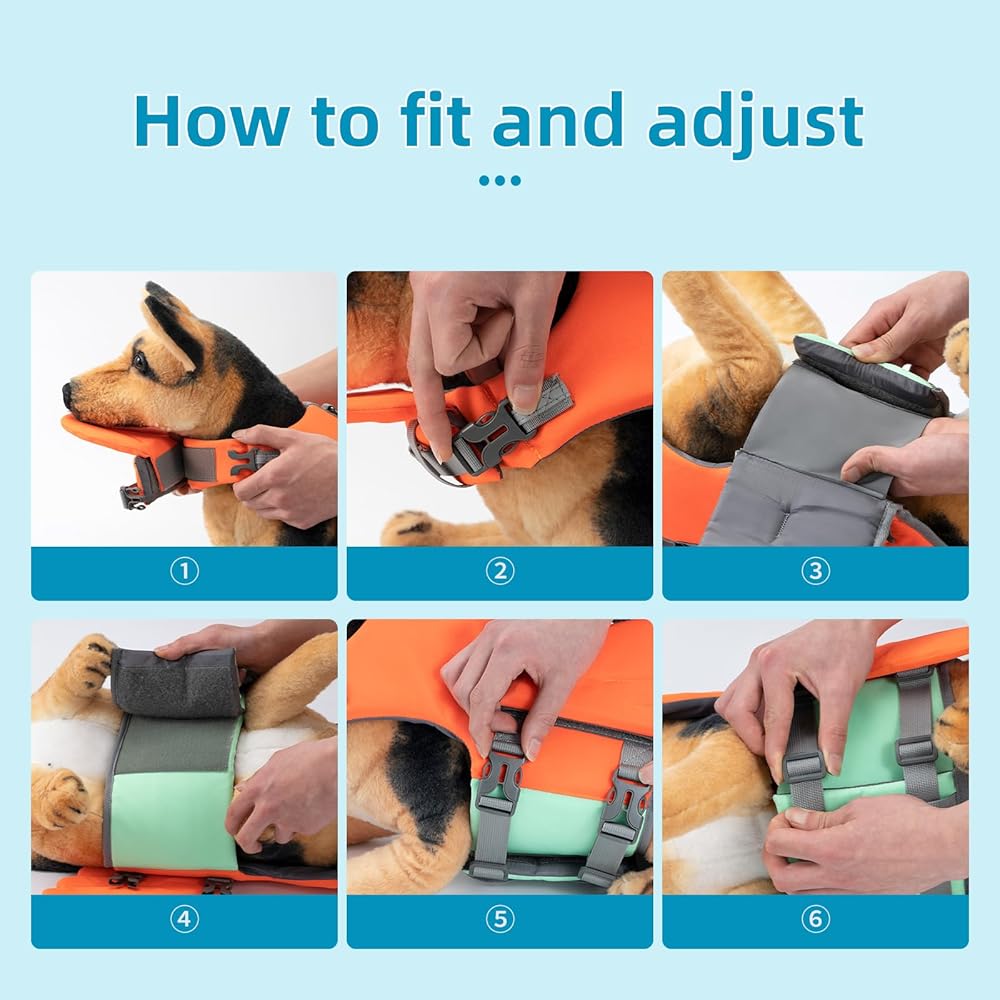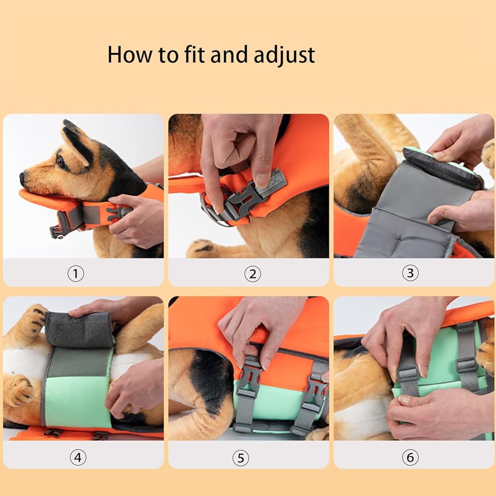 【ADJUSTABLE DOG SWIM VEST】The dog life vest is designed with sturdy adjustable nylon straps and double rows of quick buckles on the belly and neck with Velcro panels to provide double safety protection for your dog. These designs are not only easy to put on and take off, but also make the product fit your dog better.