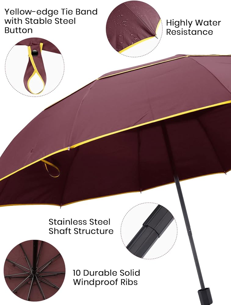 √ Oversize Umbrella: Large oversize canopy and heavy duty design large compact umbrella is an ideal companion for golfers, the business professional or for daily life. The travel umbrella shelter you well from the sun and rain.