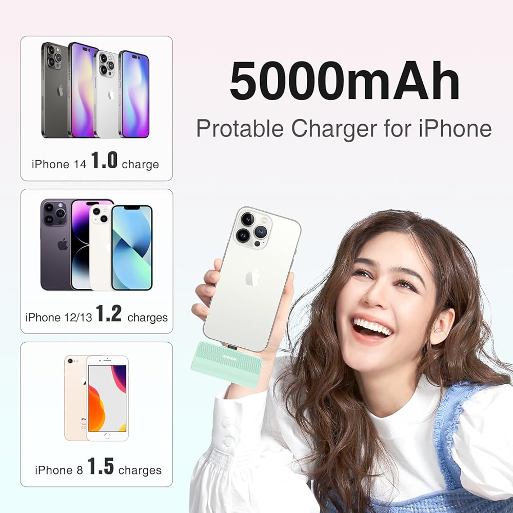 🔋【5000mAh & 12W Extra Power】Best Portable Charger for iPhone or AirPod, normally 0.8~1.5 charge for your iPhone, which allows you enjoy the outside activities without worrying about your phone power off. Provide 1.1 times charge for iPhone 12 ,1 times for iPhone 13, 1.5 times for iPhone 8. Equipped with Pass-Through Function, you can charge your iPhone while recharging this cell phone travel charger.