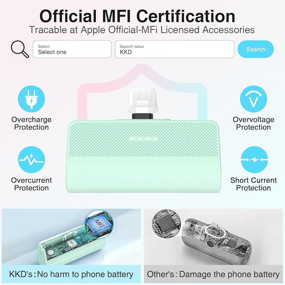 🔋【Reliable MFi Certified】KKD's portable chargers for iPhone are officially MFi certified, exemplifies compatibility, reliability, and efficiency, provides a secure and efficient fast charging experience for your iPhone. It does not harm your iPhone battery like other non-MFi-certified ligh*ning portable charger. Real MFi certification is traceable, simply search our brand "KKD" at Official MFI Licensed Accessories.