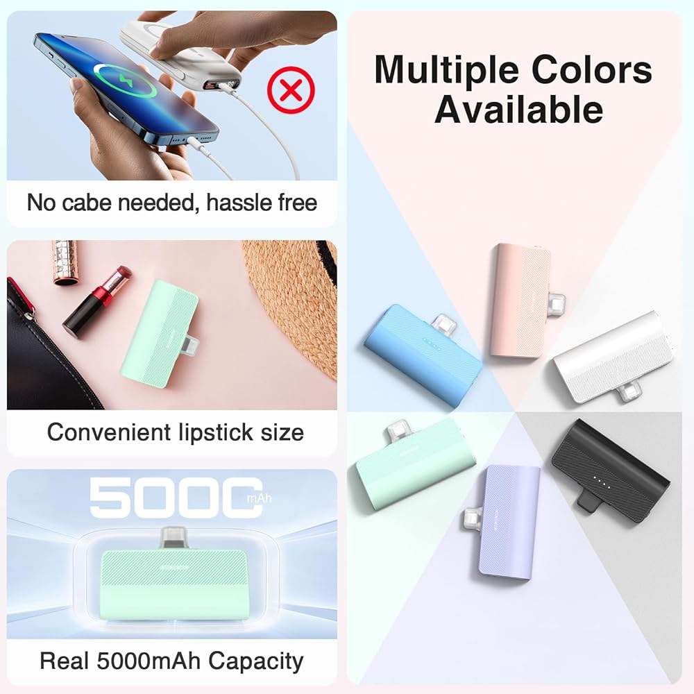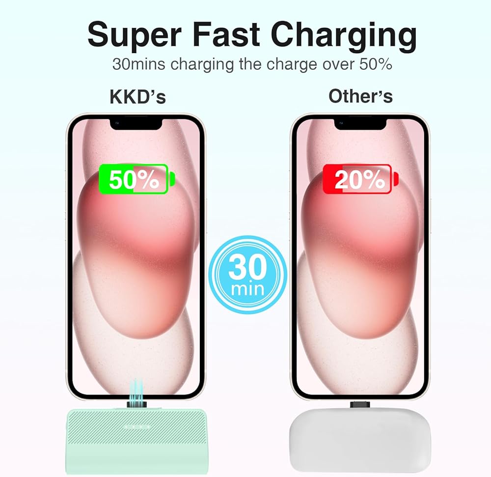 🔋【Pocket-Sized Compact Power Bank】KKD's small portable phone charger is as compact as lipstick with a weight of only 0.2 pound, easily slips into your pocket, purse, or bag. Ultra small & lightweight design making it an ideal on-the-go charging solution. Perfect as a emergency backup battery charger for travelling.