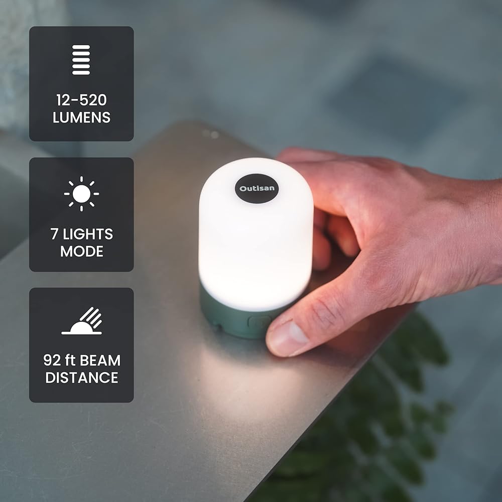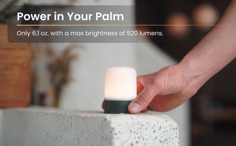 【 Power in Your Palm 】Lightweight yet powerful, our outdoor camping lantern weighs just 6.1oz and fits in the palm of your hand. Having a total of 7 light modes, ranging from night mode (12 lumens) to bright mode (520 lm) with a beam distance of 92 ft! So whether you need a camping light for the outdoors, a tent lantern under the stars or just a bright light for the back patio, this camp lantern is for you.