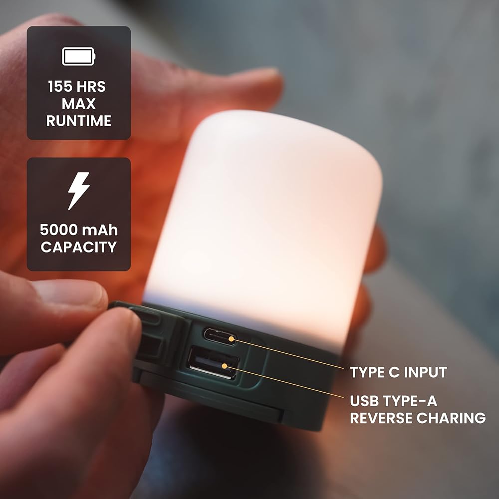 【 Endless Power 】The LED rechargeable camping light boasts a powerful battery with 5000 mAh capacity and a maximum runtime of 155 hours on a single charge. This USB lantern has a type-C input for convenient recharging, ensuring you're never left in the dark. It's an always-ready, always-reliable rechargeable camping light that you can count on for camping, road trips, or late nights in the backyard.