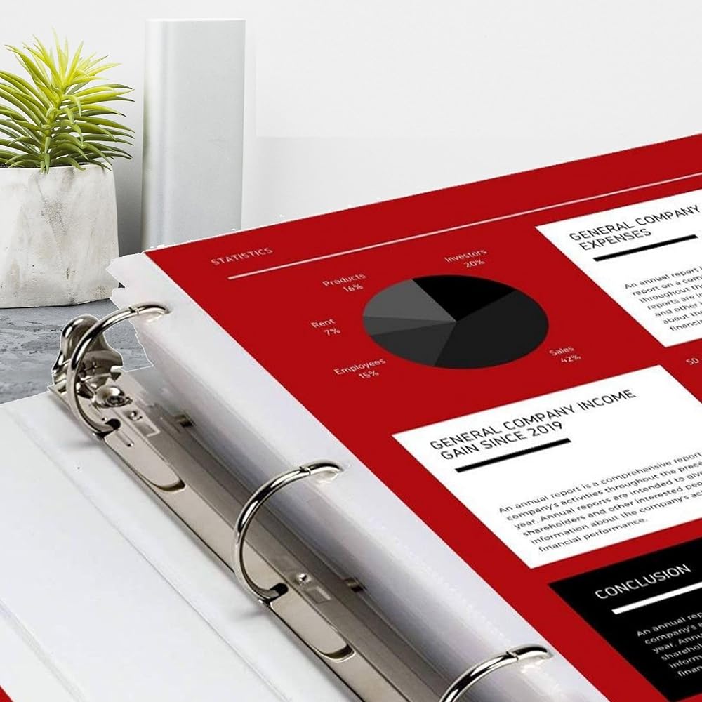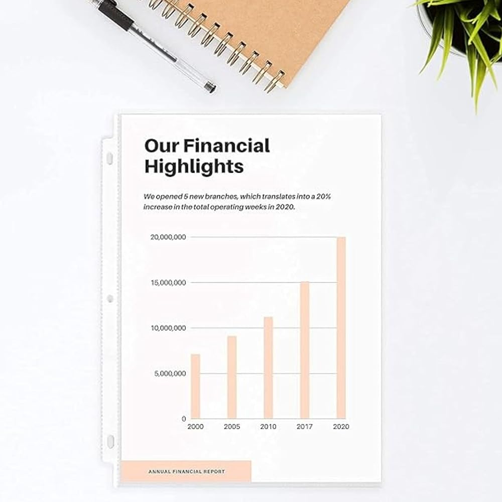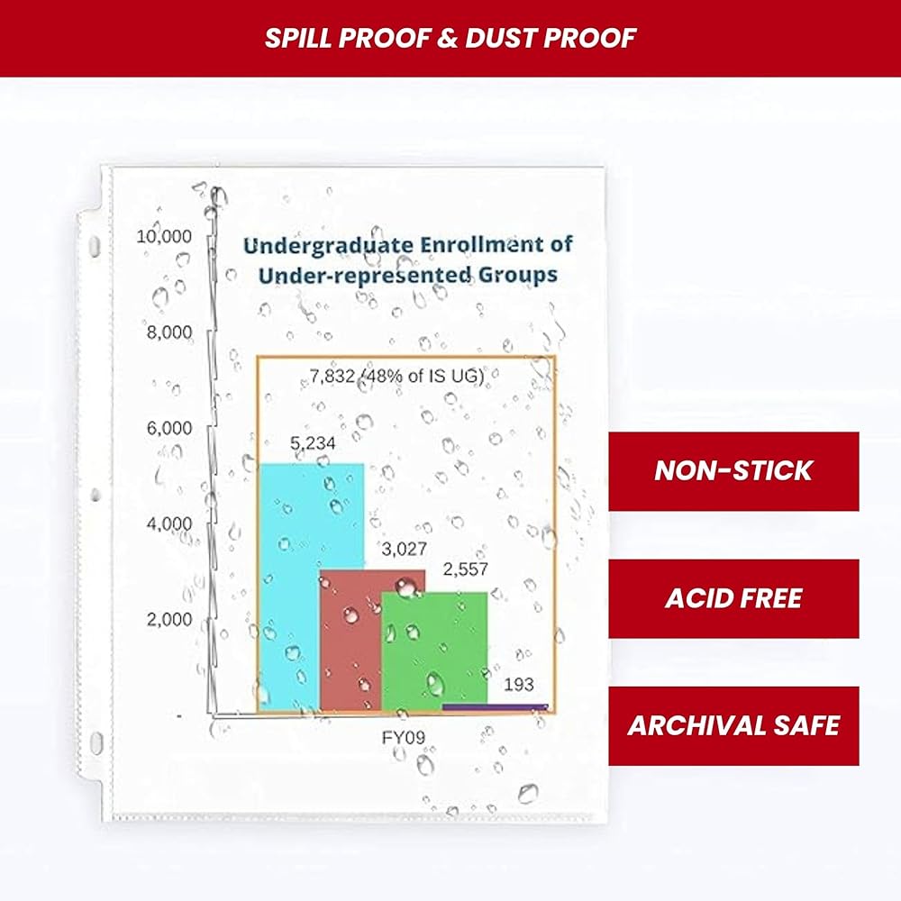 ✔️ PREMIUM QUALITY - Sheet protectors are PVC free, acid free, odor free and made of environmentally safe recyclable polypropylene. Each hole line is reinforced with a white polypropylene reinforcement.