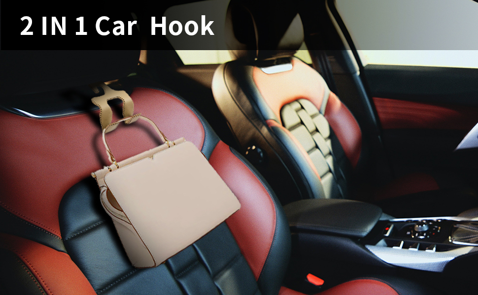 Purse Hook for Car,2 in 1 Car Hooks for Purses and Bags, 2 Pcs Headrest Hooks for Car,Durable Hanger Storage Holder Leather Organizer for Grocery Hanging