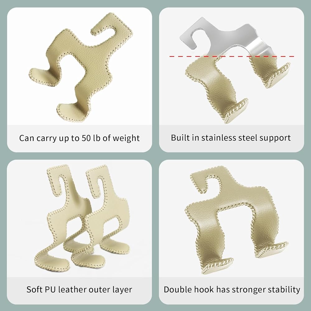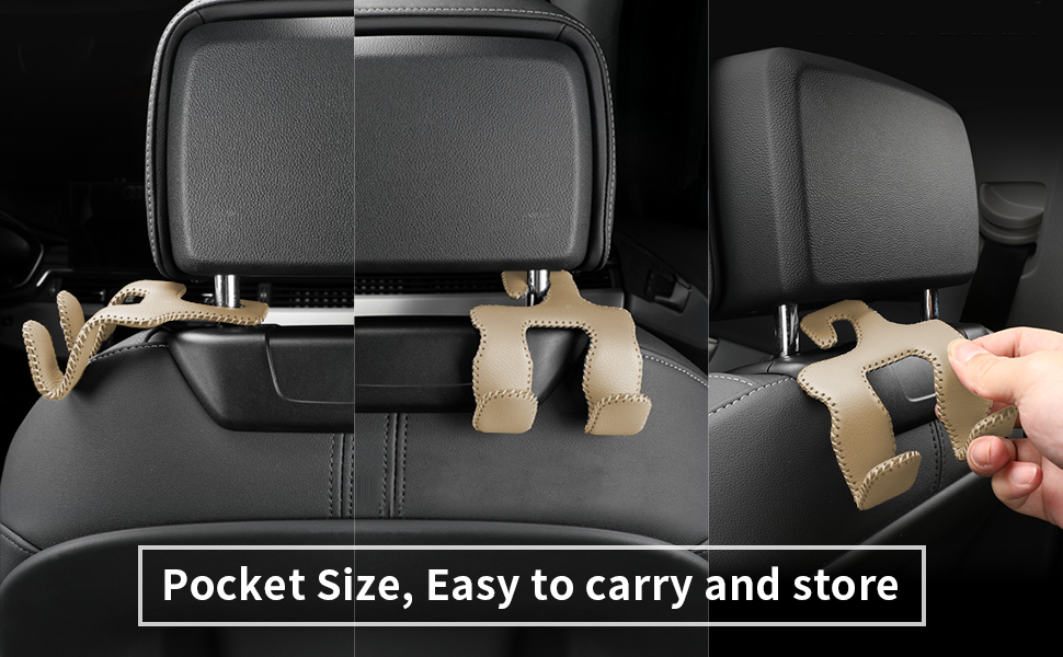【Premium Stainless Steel Build】: Our car purse hook is meticulously crafted from high-grade stainless steel and PU leather, ensuring durability, longevity, and a sleek aesthetic that seamlessly blends with your car's interior.