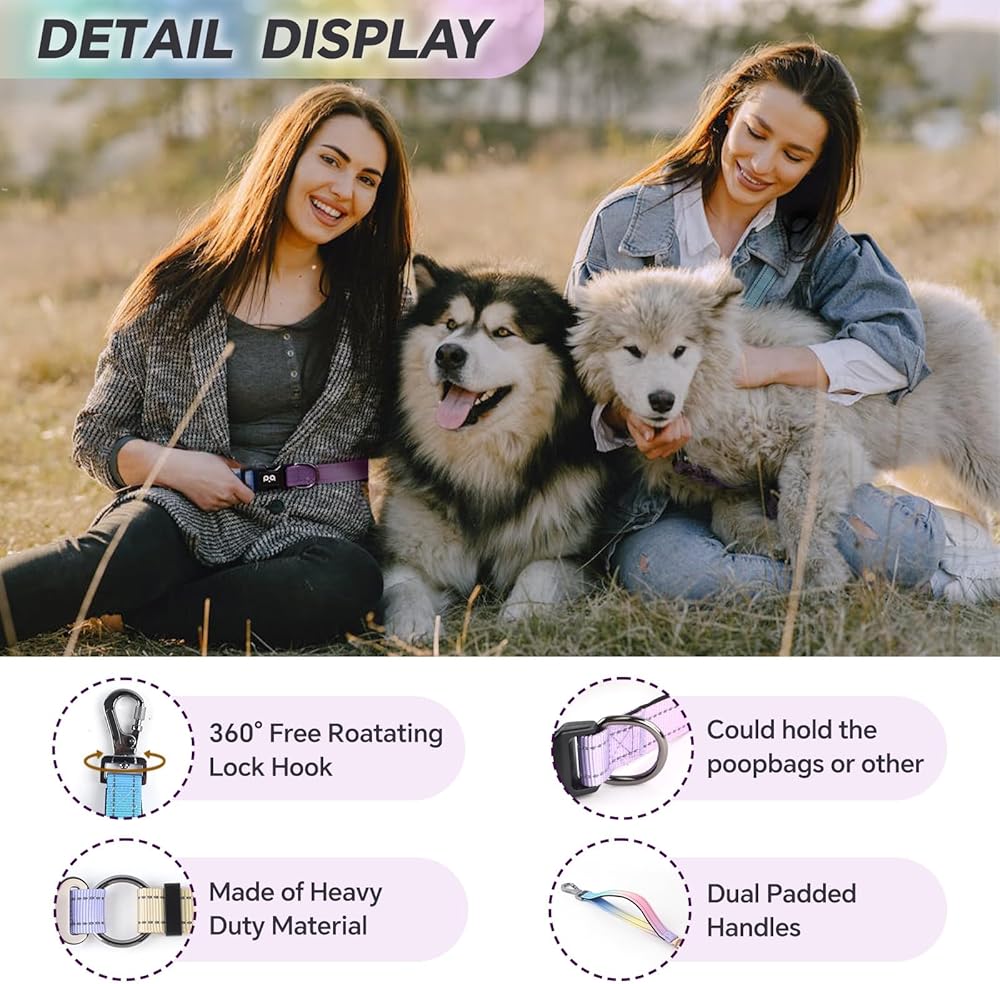 Reflective Design: The reflective strips around will keep your pets always visible in dark environments. Improves safety when you with your pet walking at night. The walking leash has a 360° swivel metal hook to provide more mobility and ensure tangle-free walking.