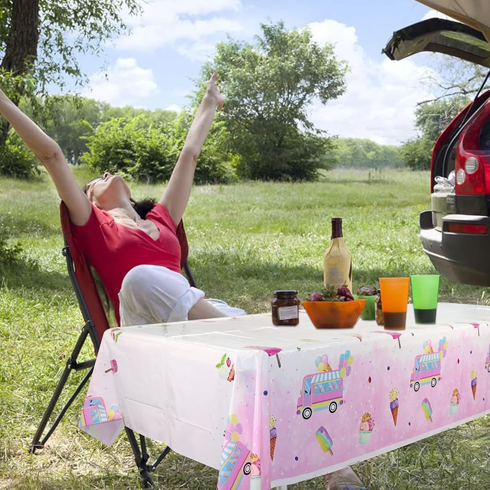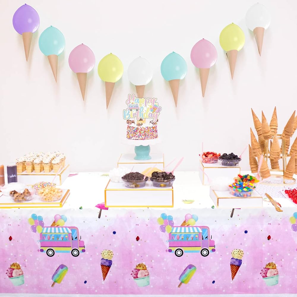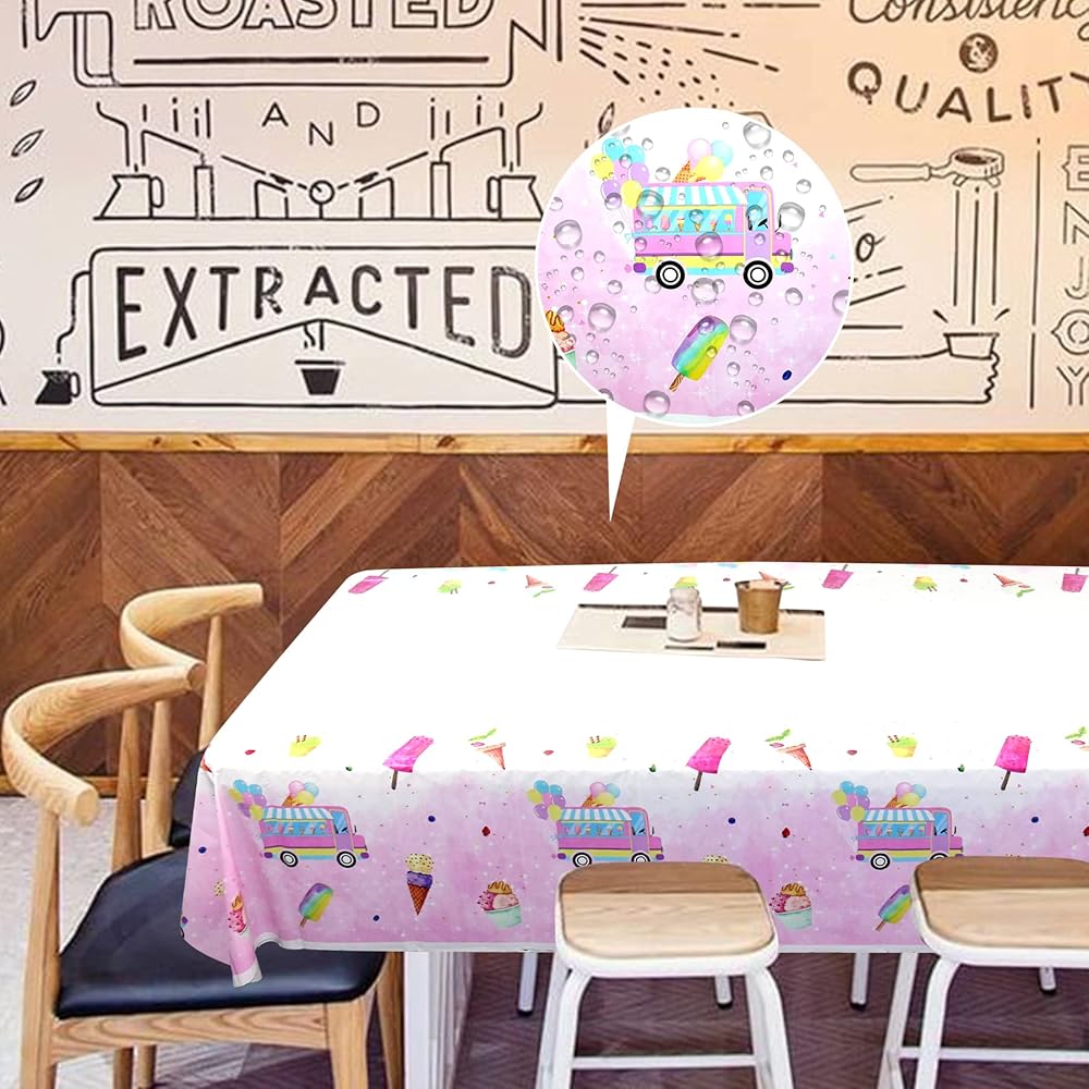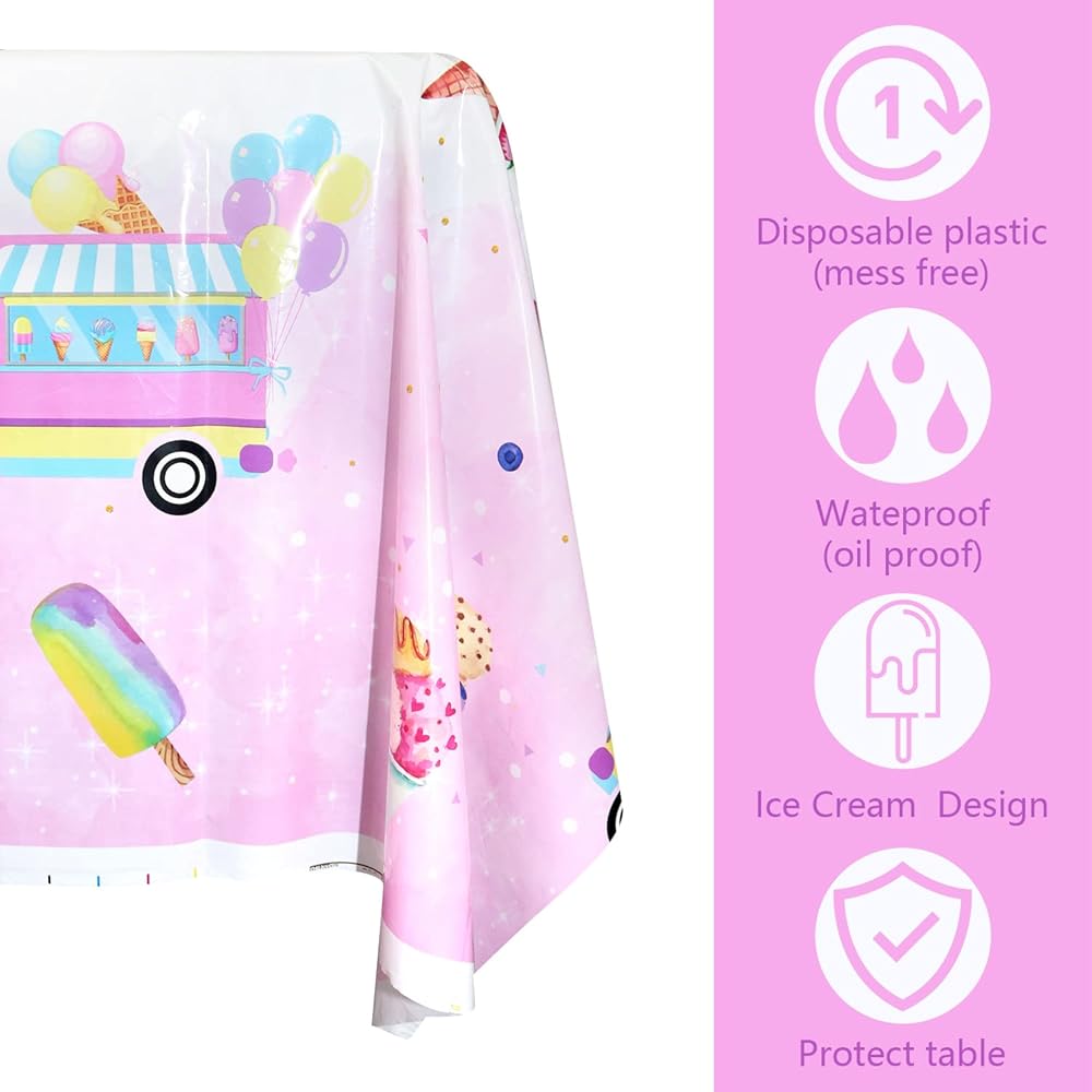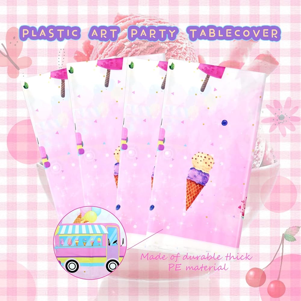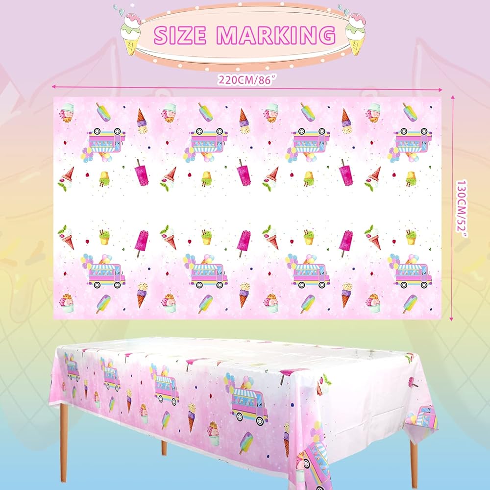 Ice cream tablecloth package includes: You will receive four ice cream party tablecloths, 220 x 130 cm / 86 x 52-inch ice cream plastic tablecloths