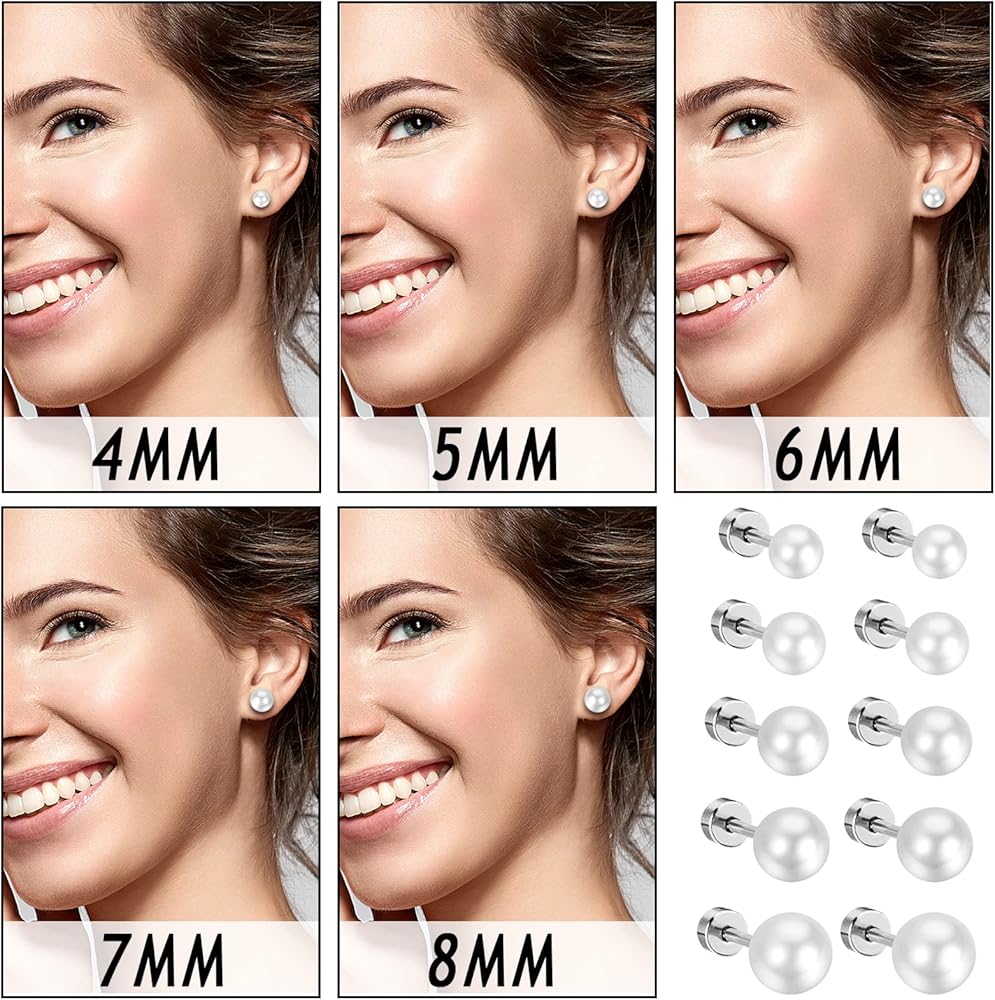 【HYPOALLERGENIC METAL】Women's pearl earrings stud set is made of high quality stainless steel, hypoallergenic, lead and nickel free, safe and comfortable for your sensitive ears. These women's pearl stud earrings perfectly match your various wearing styles and make you the center of attention in the crowd. Women's hypoallergenic earrings can be worn every day without making you feel any discomfort.