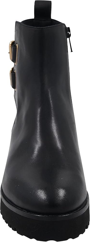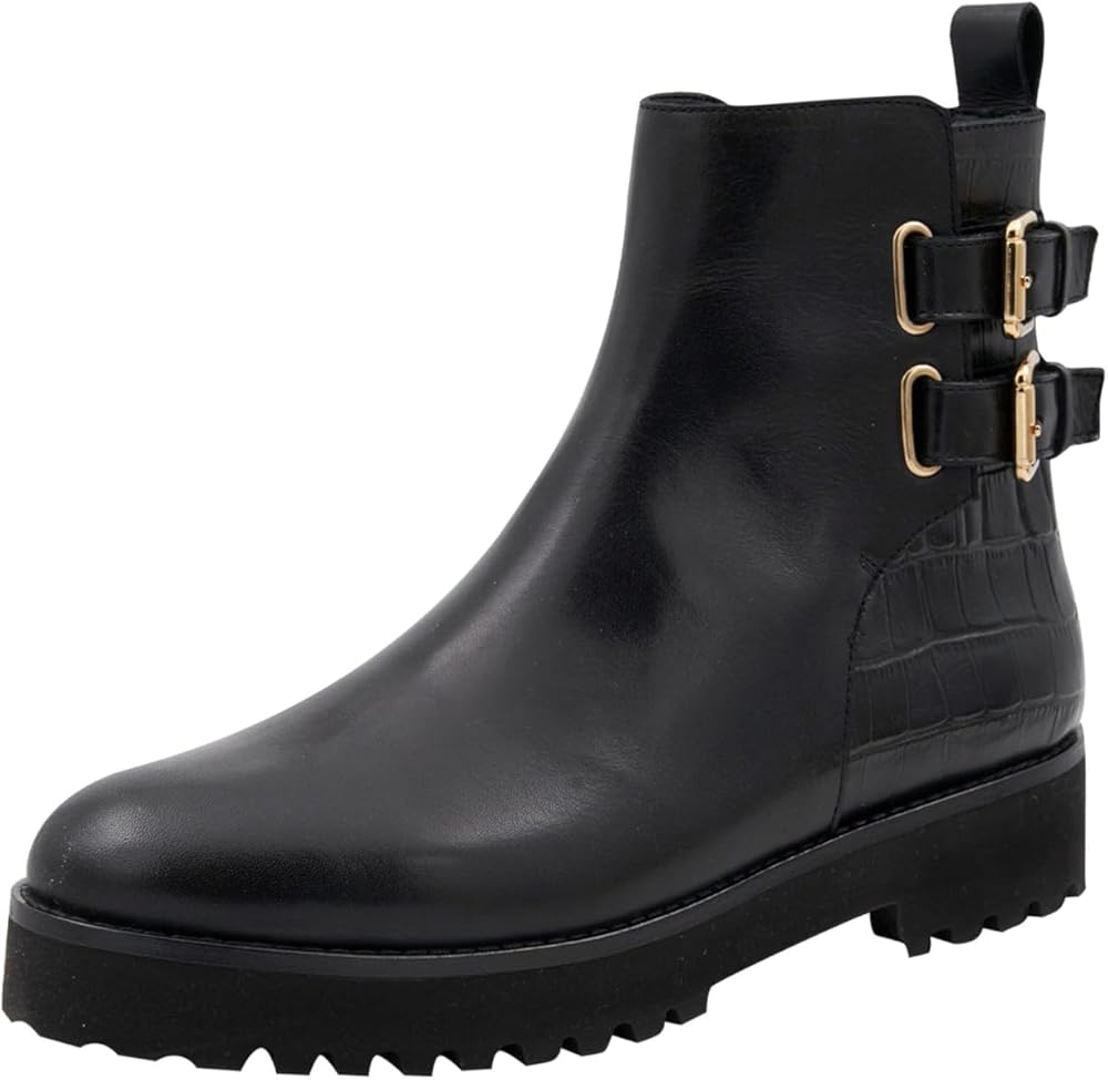 Our Pandora leather boot is constructed with a pull tab and side zip for easy on/off maneuverability. With a rounded toe and double buckle strap detailing, you will feel elevated with however you decide to pair them.