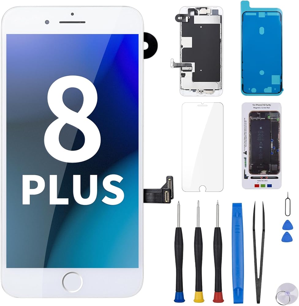 for iPhone 8 Plus Screen Replacement 5.5" White Repair Kit with Home Button 8plus 3D Touch LCD Display Digitizer Full Assembly Front Camera Speaker Sensor Glass Fix Tools A1864 A1897 A1898