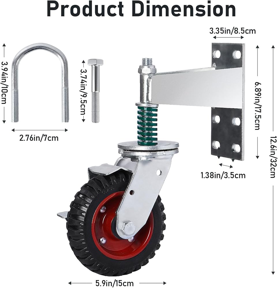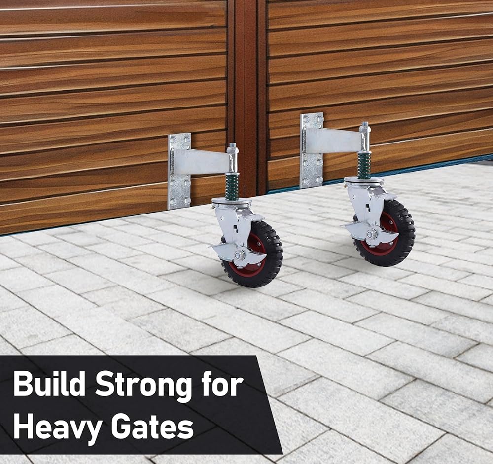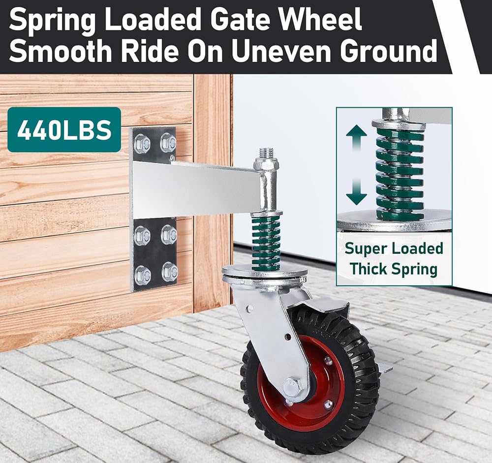 【Support Up to 600LBS】lesolar gate wheel with spring built strong for any gate but especially a large, heavy, hard to move one. The heavy duty spring allows the gate to roll on uneven terrain very well